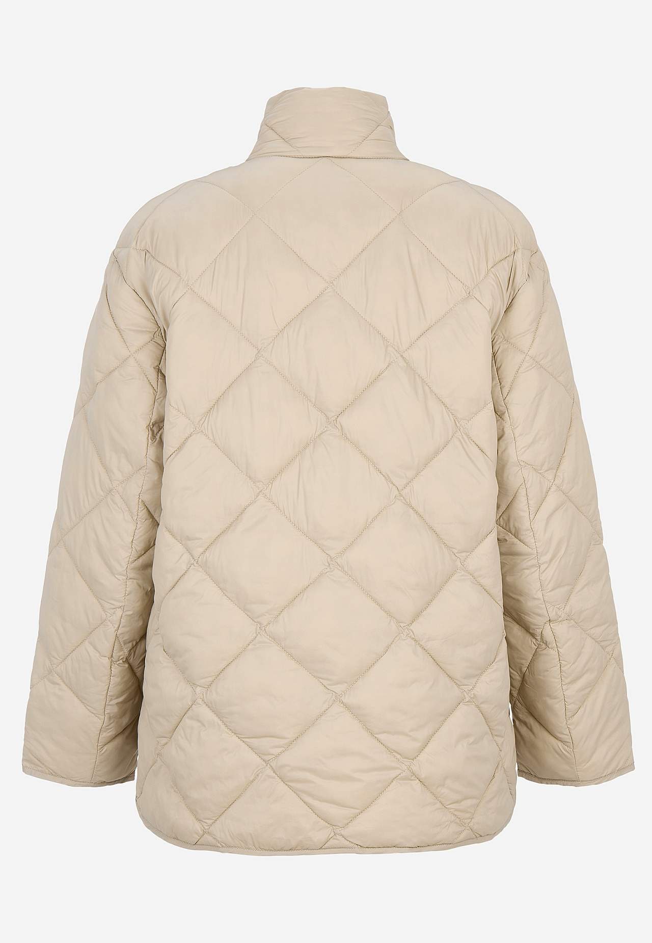 Fully lined jacket with classy, relaxed design. Slightly shiny surface and down-like, soft, fluffy filling. Quilted checked pattern. Straight fit. Comfy, cosy stand-up collar. Gently dropped shoulder shoulder. Long, straight sleeves with nice hemline at the cuffs. Two-way zip with wind placket. Patch front pockets. Gently ... Read more