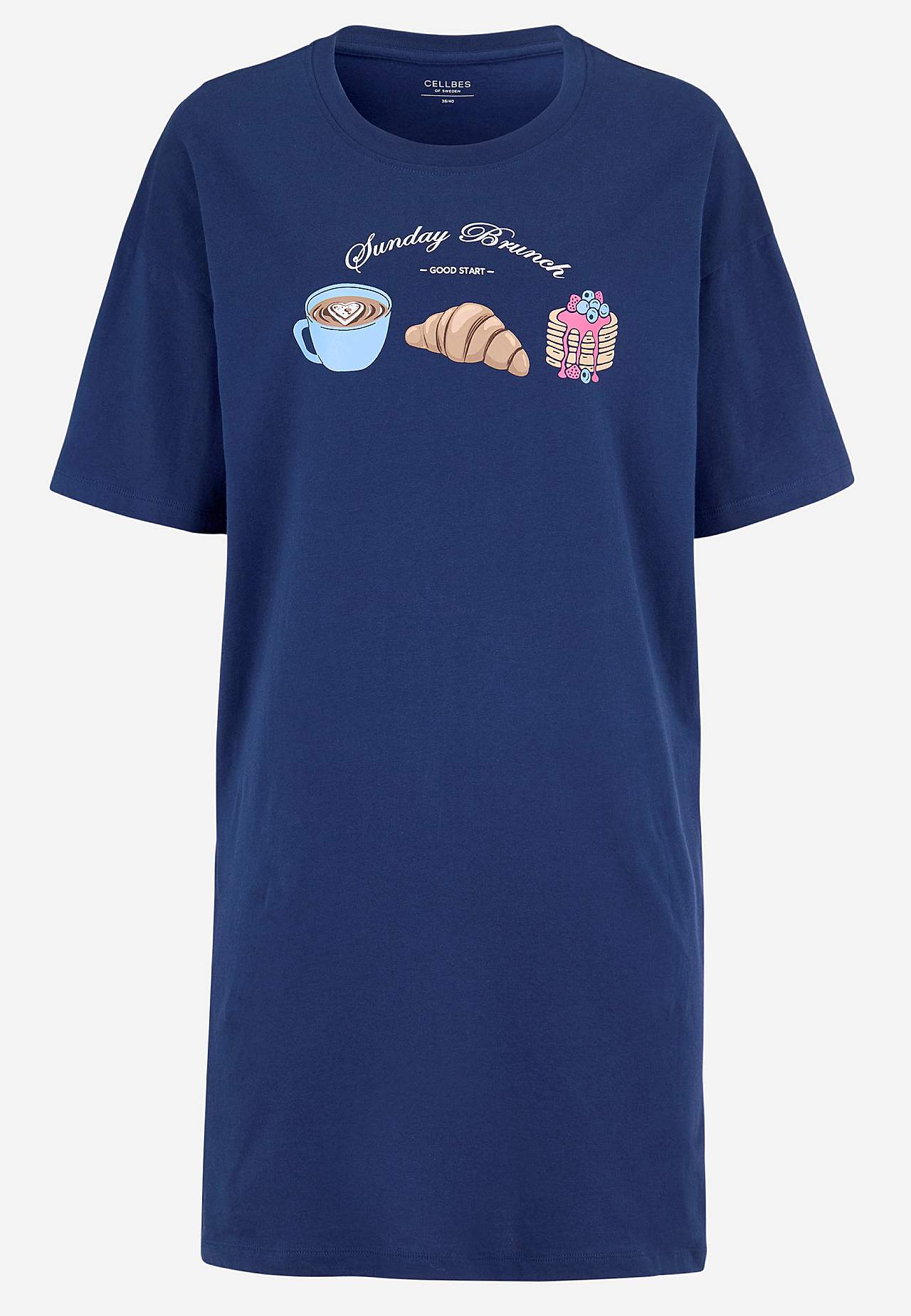 Short nightdress in soft organic cotton. Print at the front. Casual, straight fit. Round neckline. Short sleeves with dropped shoulder. Straight hem with slit at the sides. The length varies with size: about 88-95 cm from the back shoulder.