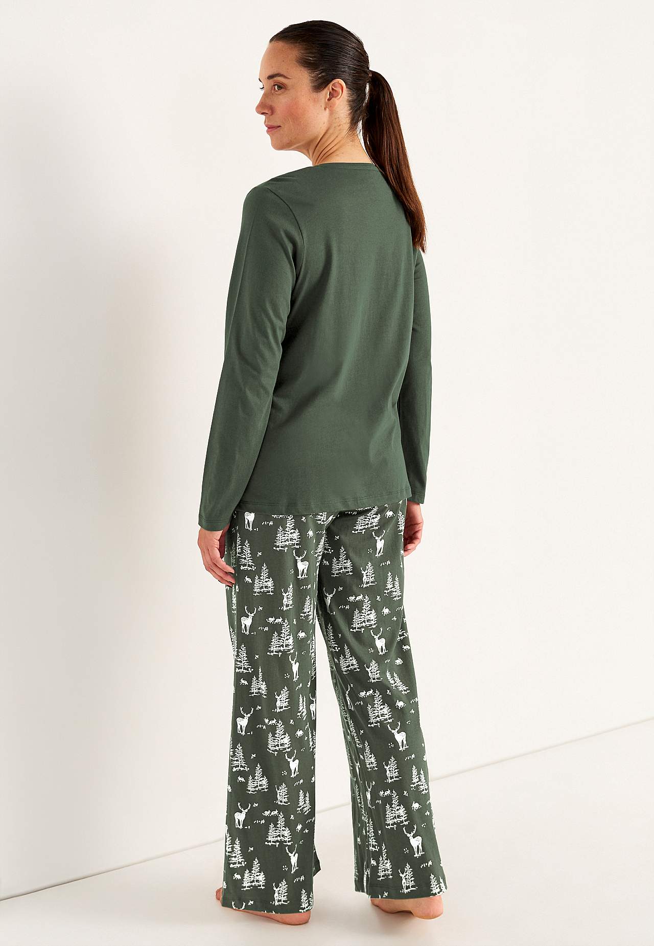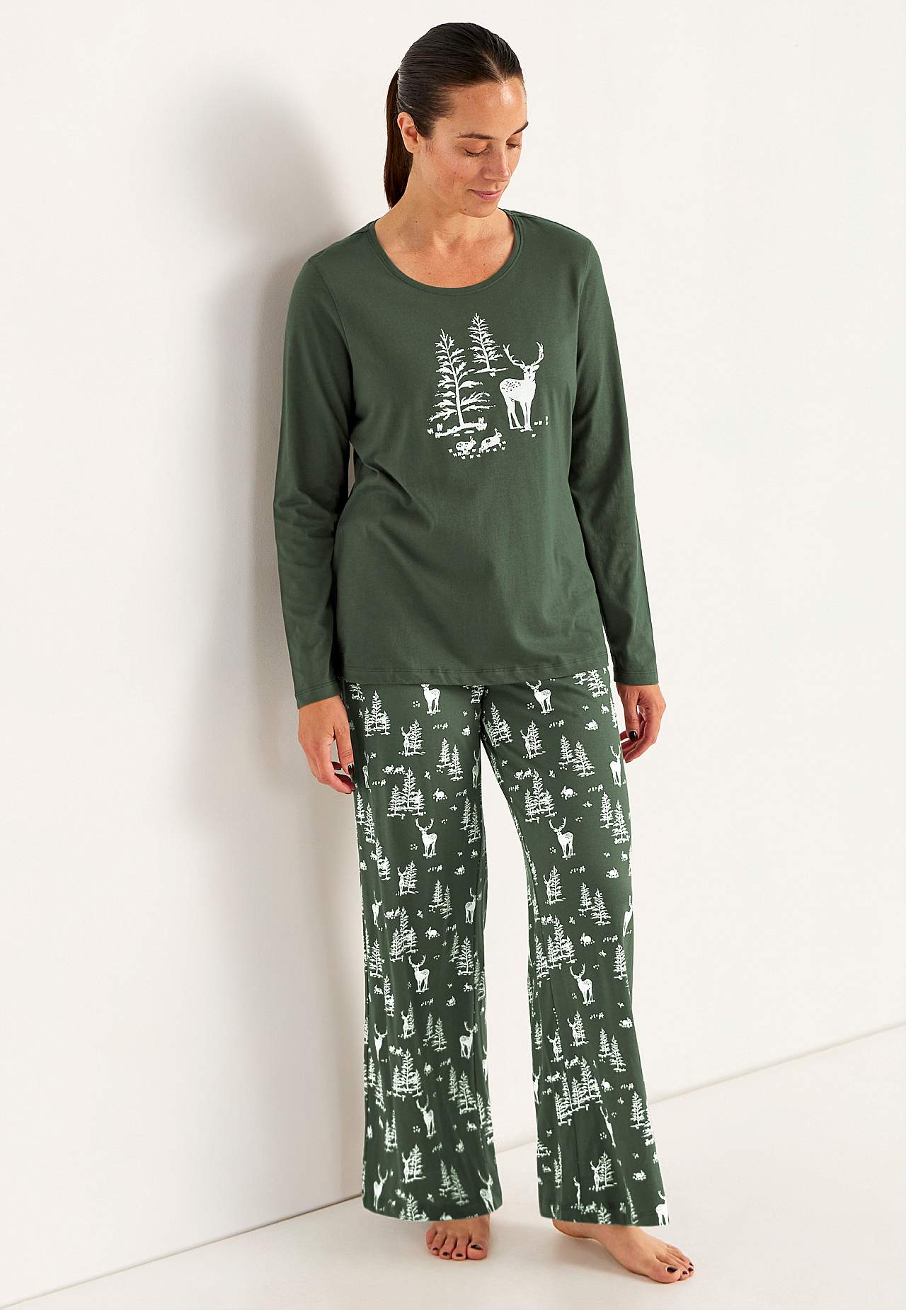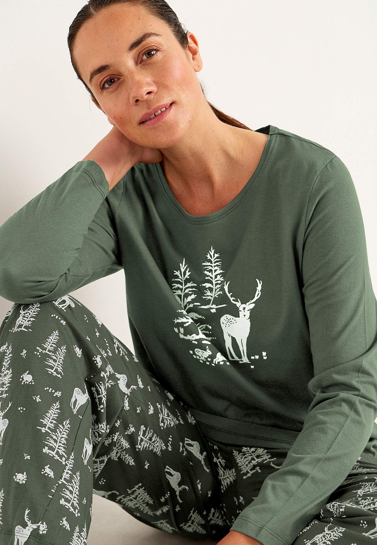 Long sleeve top. Long trousers. Upper: Pyjama top with round neck. The length varies with size: about 67-79 cm from the shoulder.