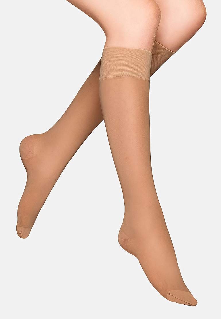 Comfortable knee sock with medium support. Compression keeps your legs feeling lighter throughout the day. As comfortable at home as when traveling. Comfortable, wide elastic welt at the top. Reinforced toe and heel. Regular fit. Semi-matte finish. 40 denier.