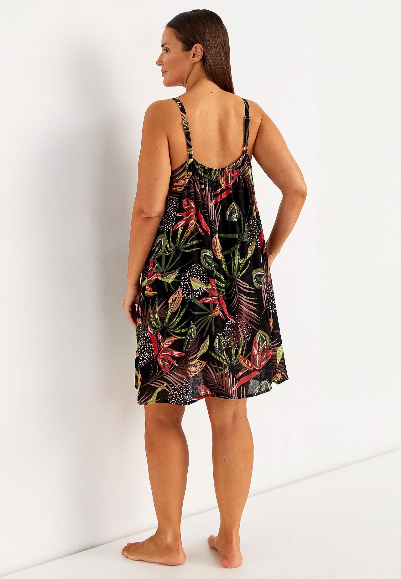 Woven dress in viscose crepe with shoulder strap. Airy, soft material. A-lined, spacious fit with nice width. Adjustable shoulder straps. Gently rounded hem. The back length varies with size: approx. 69-76 cm.