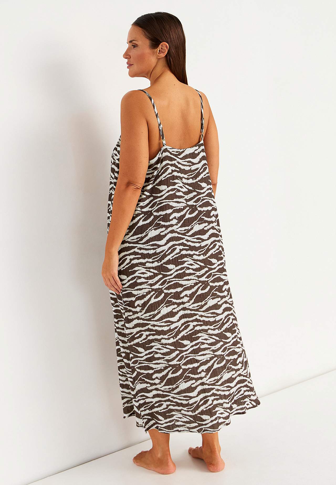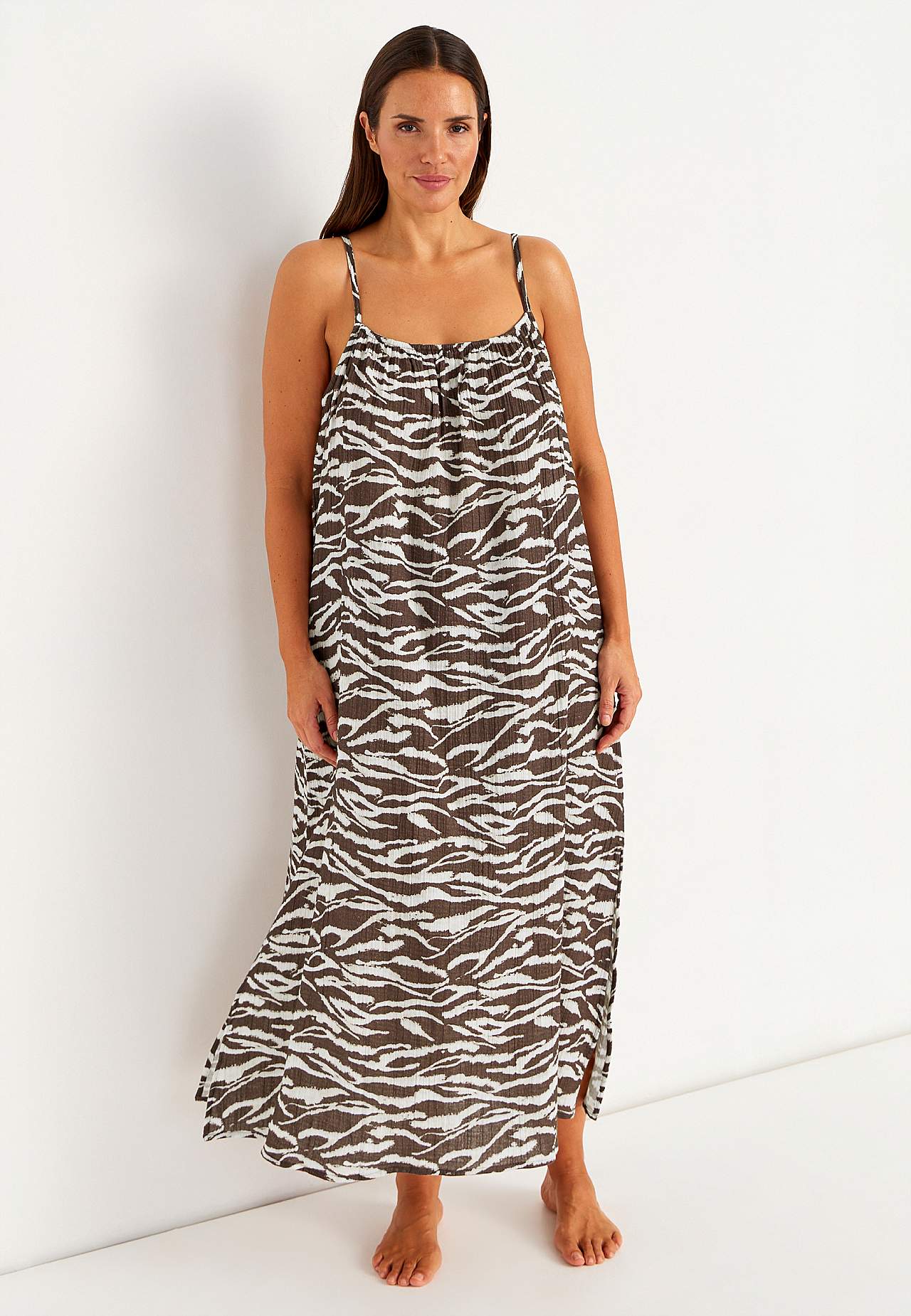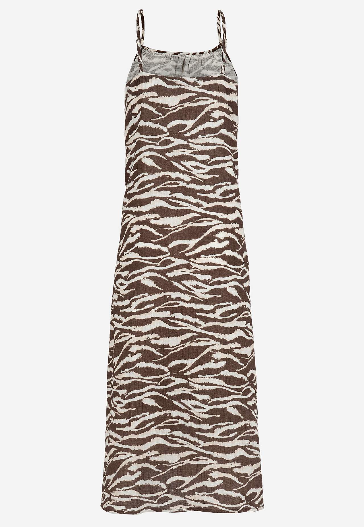 Dress in cotton gauze with natural structure. Woven, soft material with airy, cooling feel. Spacious, straight fit. Thin adjustable shoulder straps. Straight hem with high slit at the sides. The length varies with size about 114-121 cm in the middle of the front.