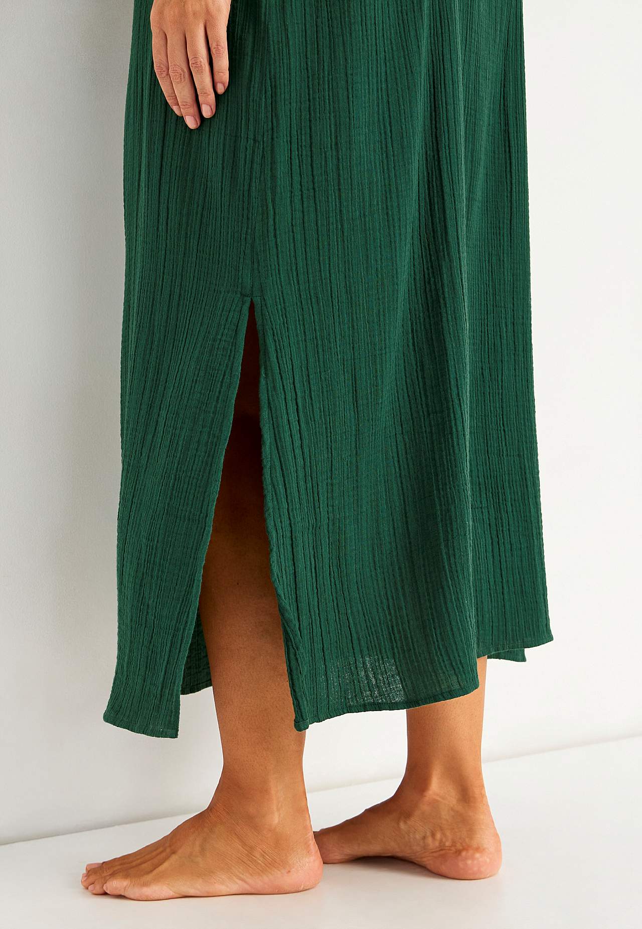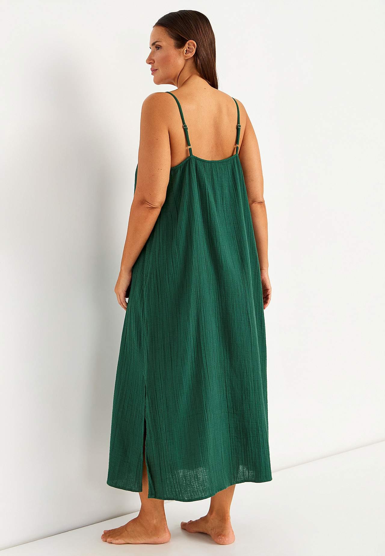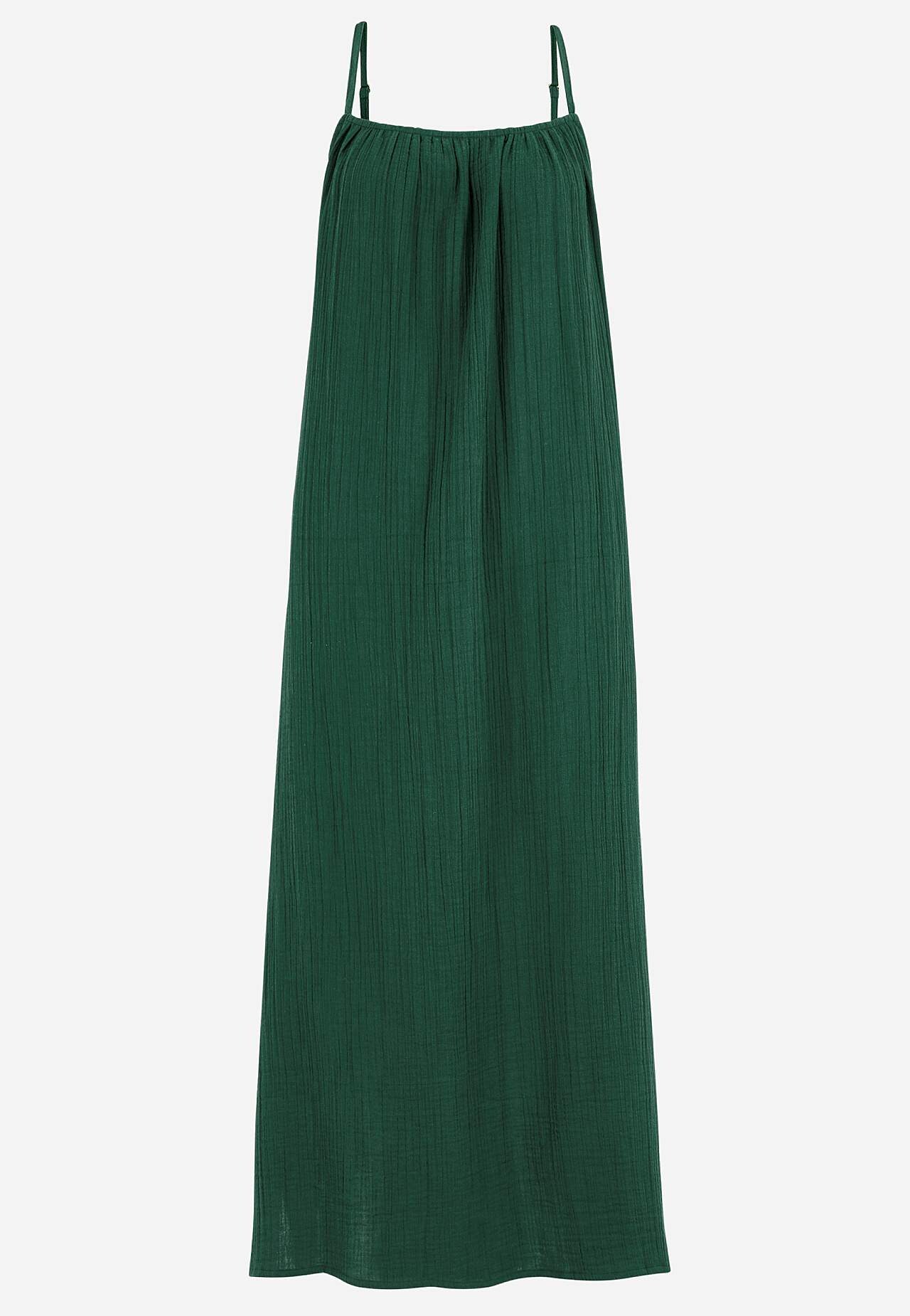 Dress in cotton gauze with natural structure. Woven, soft material with airy, cooling feel. Spacious, straight fit. Thin adjustable shoulder straps. Straight hem with high slit at the sides. The length varies with size about 114-121 cm in the middle of the front.
