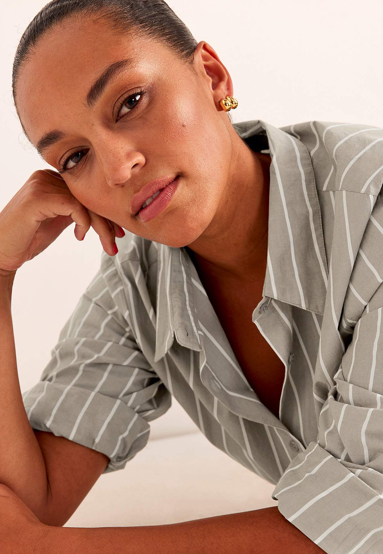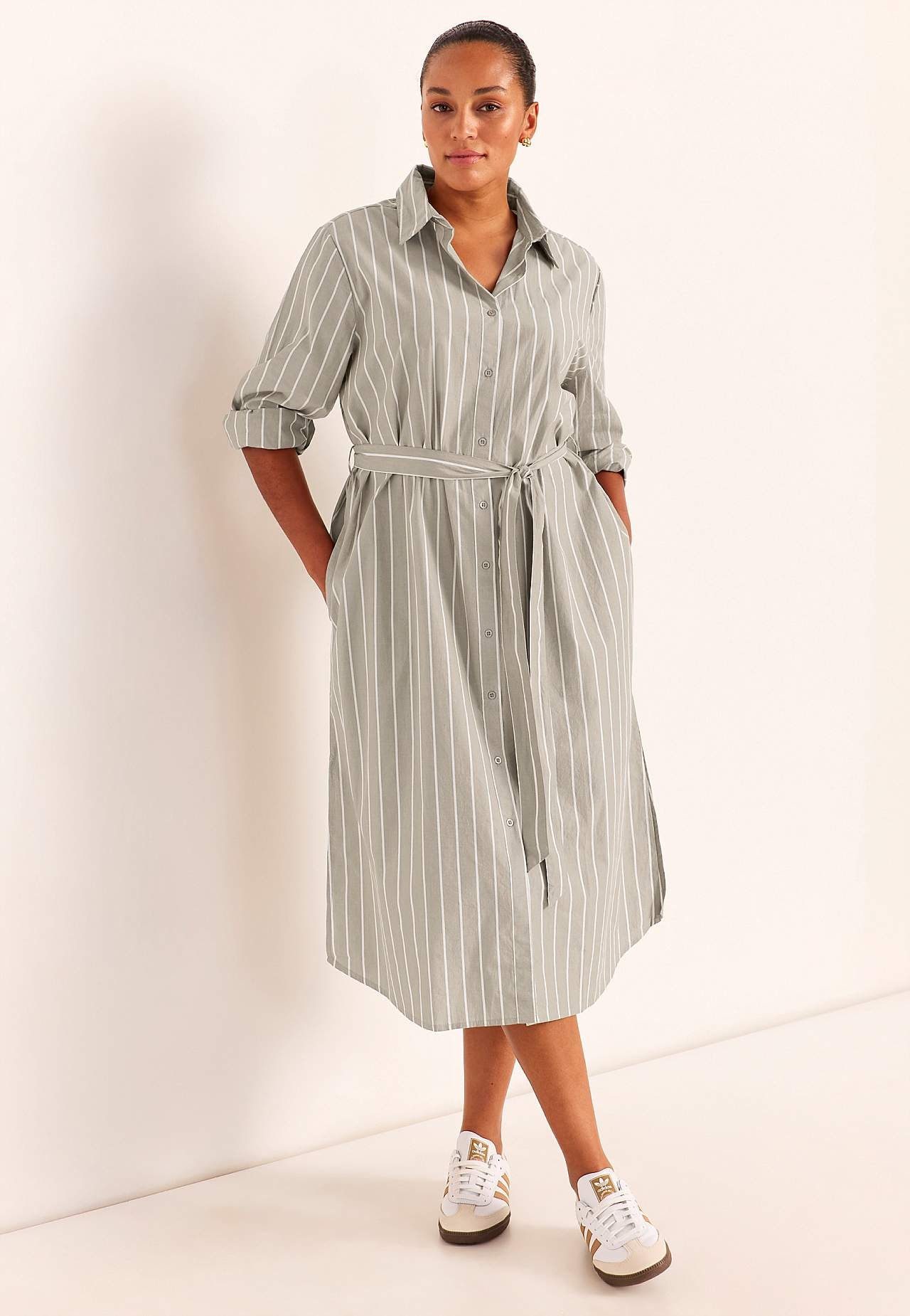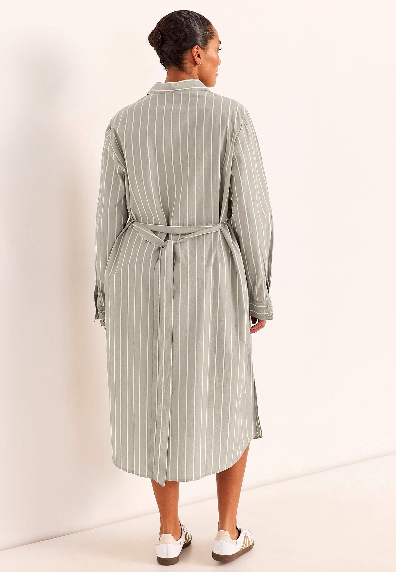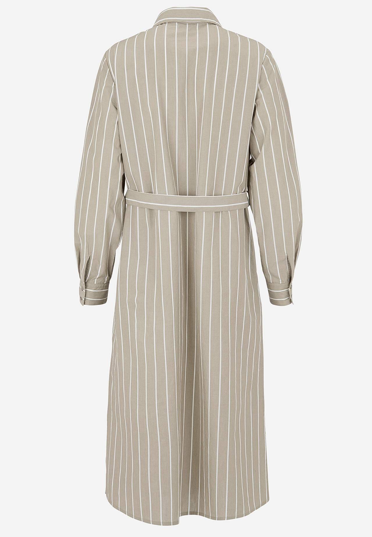 Shirt dress with classic collar and removable tie belt. Woven, soft material with crisp feel. Yarn-dyed stripe. Loose and casual fit. Classic collar. Buttoned through model. Long sleeves with cuff and buttons. Removable tie belt. Nice to wear with or without the belt. Side seam pockets. Rounded hem with slit at the sides. B... Read more