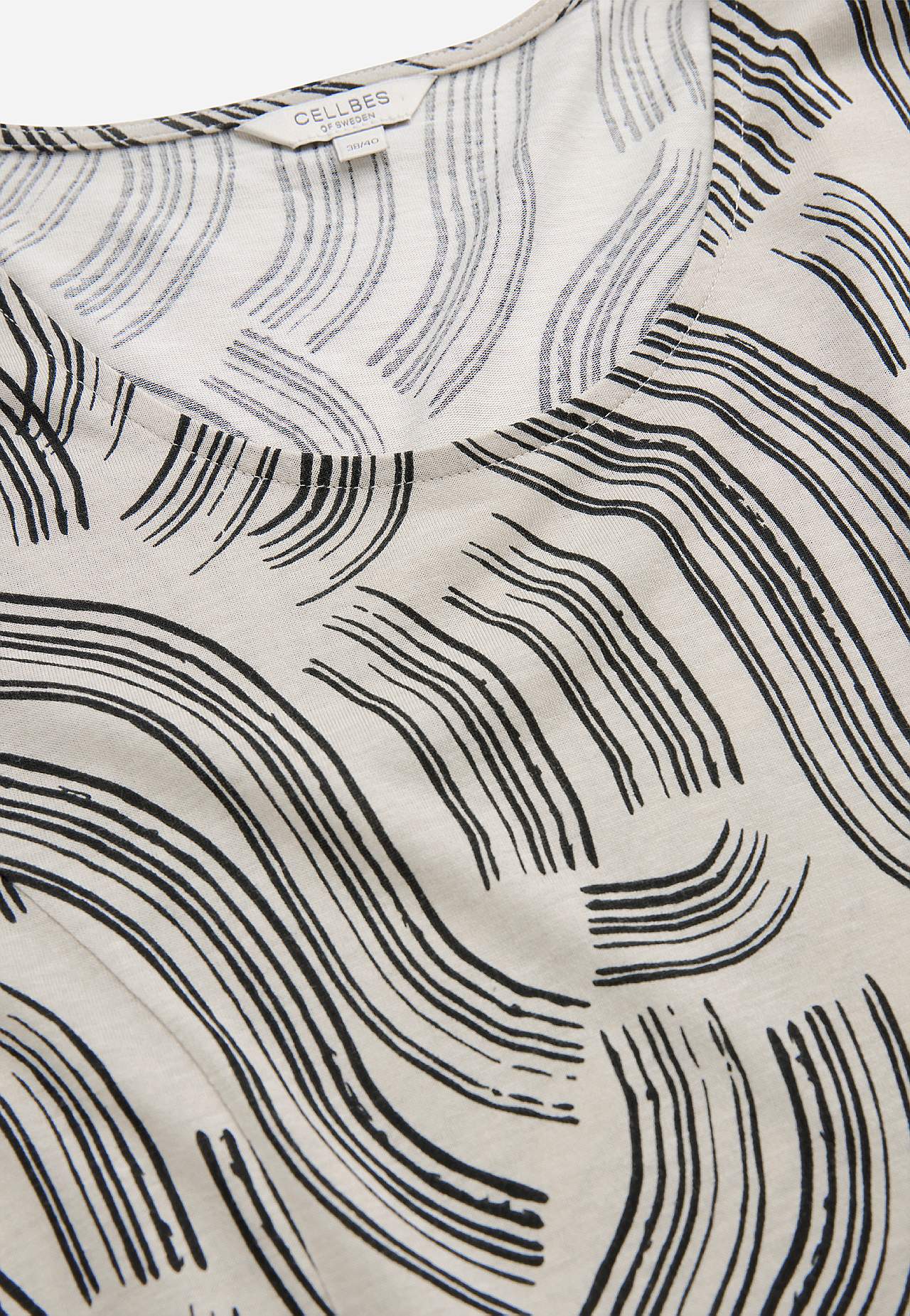 Soft, comfortable dress in cotton viscose blend. Tight fit over the bust. Flared model with panel seams at both front and back. Rounded neckline. Comfy side pockets. 3/4 length, straight sleeves. The length varies with size: about 96-108 cm from the shoulder.