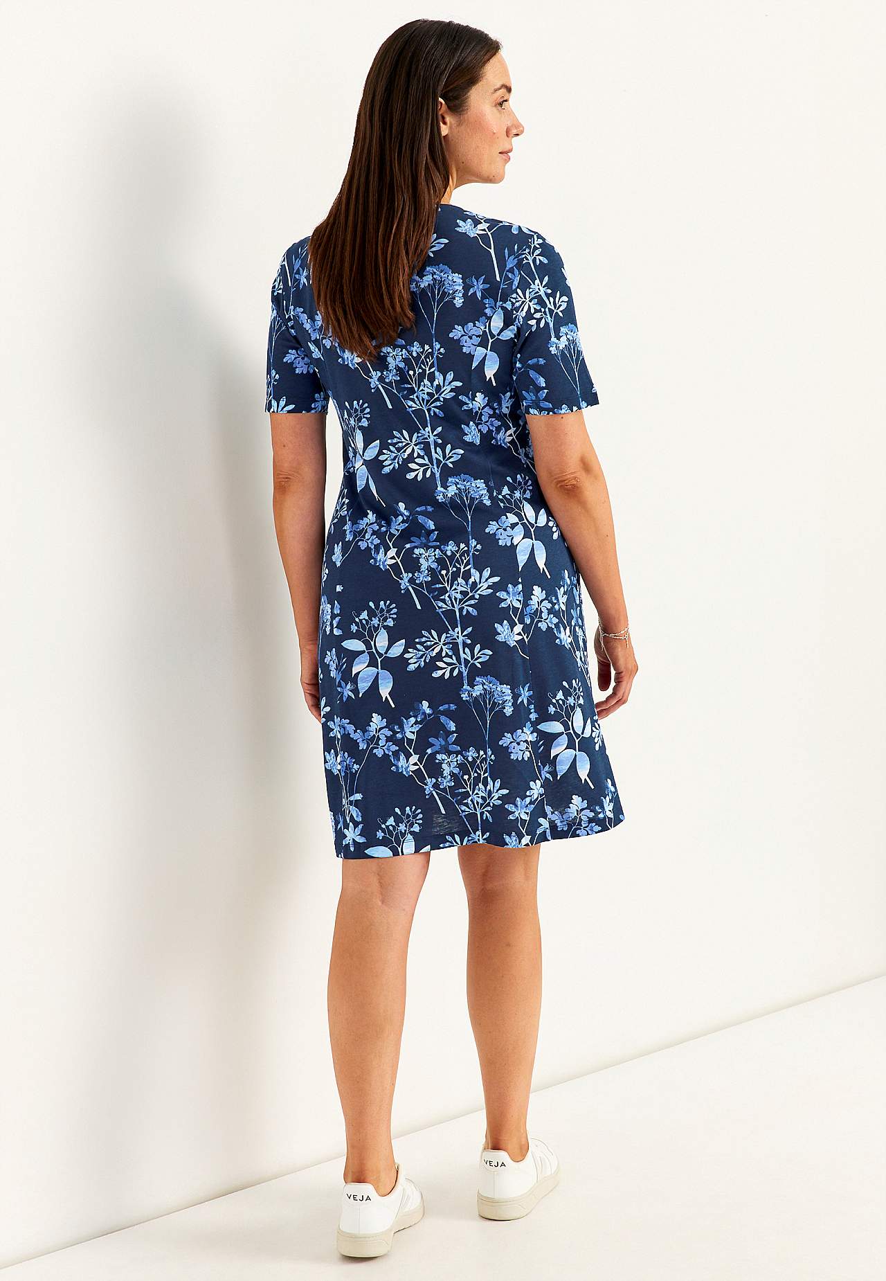 Soft, comfortable dress in cotton viscose blend. Slightly figure-shaped, tight fit over the bust. V-neck neckline. Flared bottom part and panel seams at both front and back. Short sleeves. Comfy side pockets. Straight bottom part. The back length varies with size: approx. 96-108 cm.