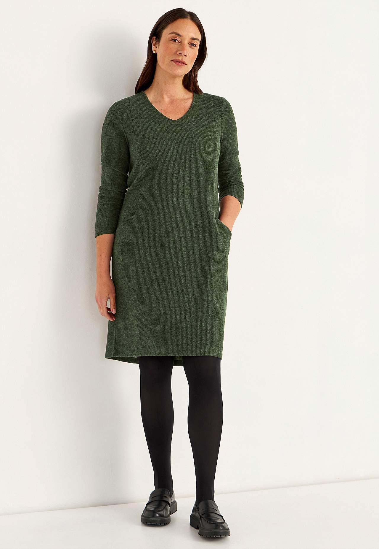 Soft dress in stretchy, slightly heavier jersey. Straight fit. V-neck model. Deep pockets at the front with soft lining. Long sleeves. Slight, slightly longer at the back rounded hem. The length varies with size: about 97-106 cm from the shoulder.