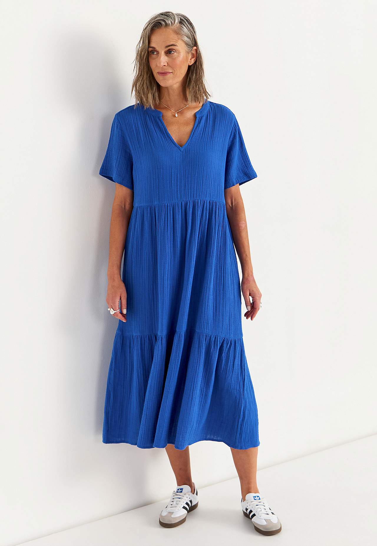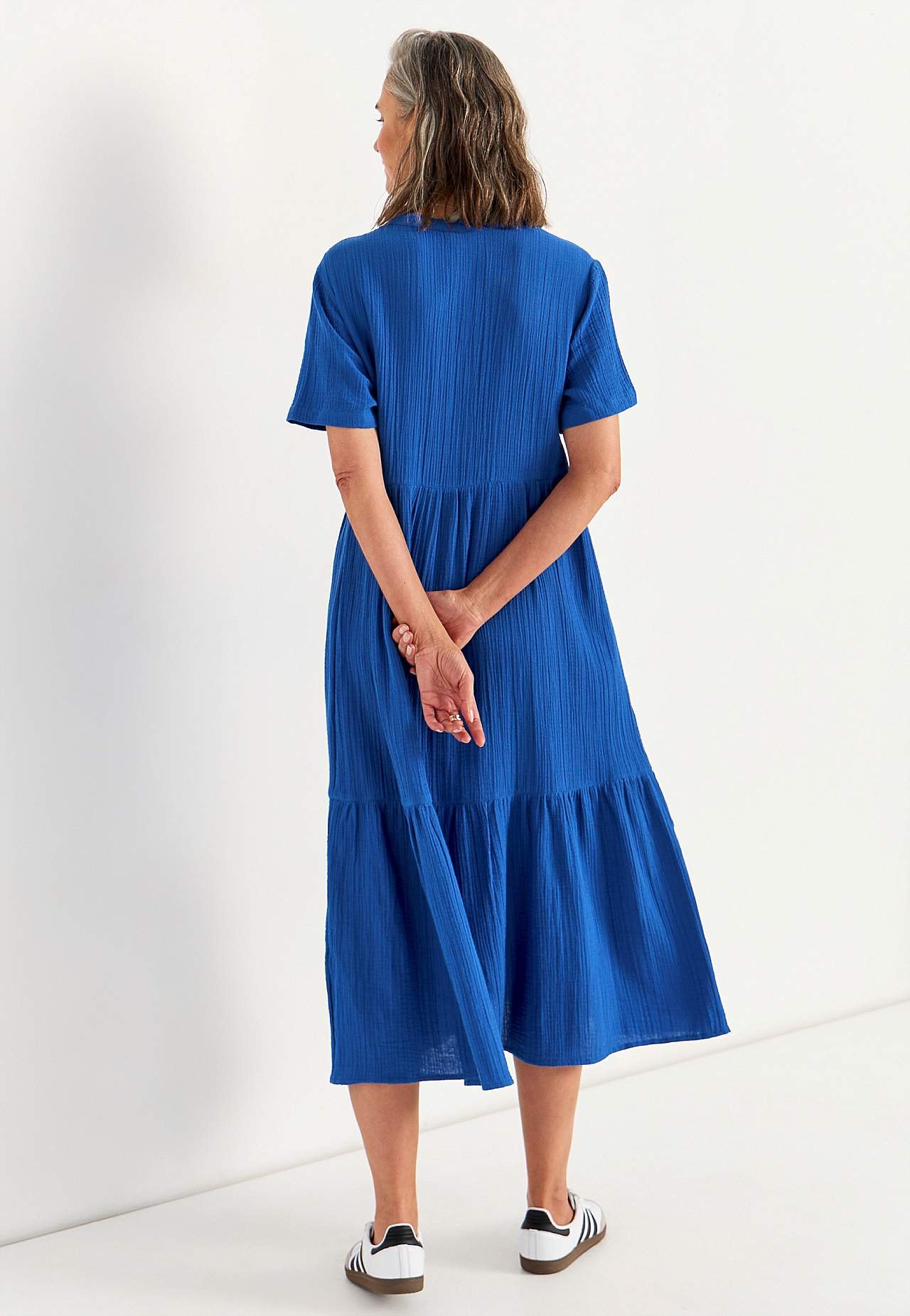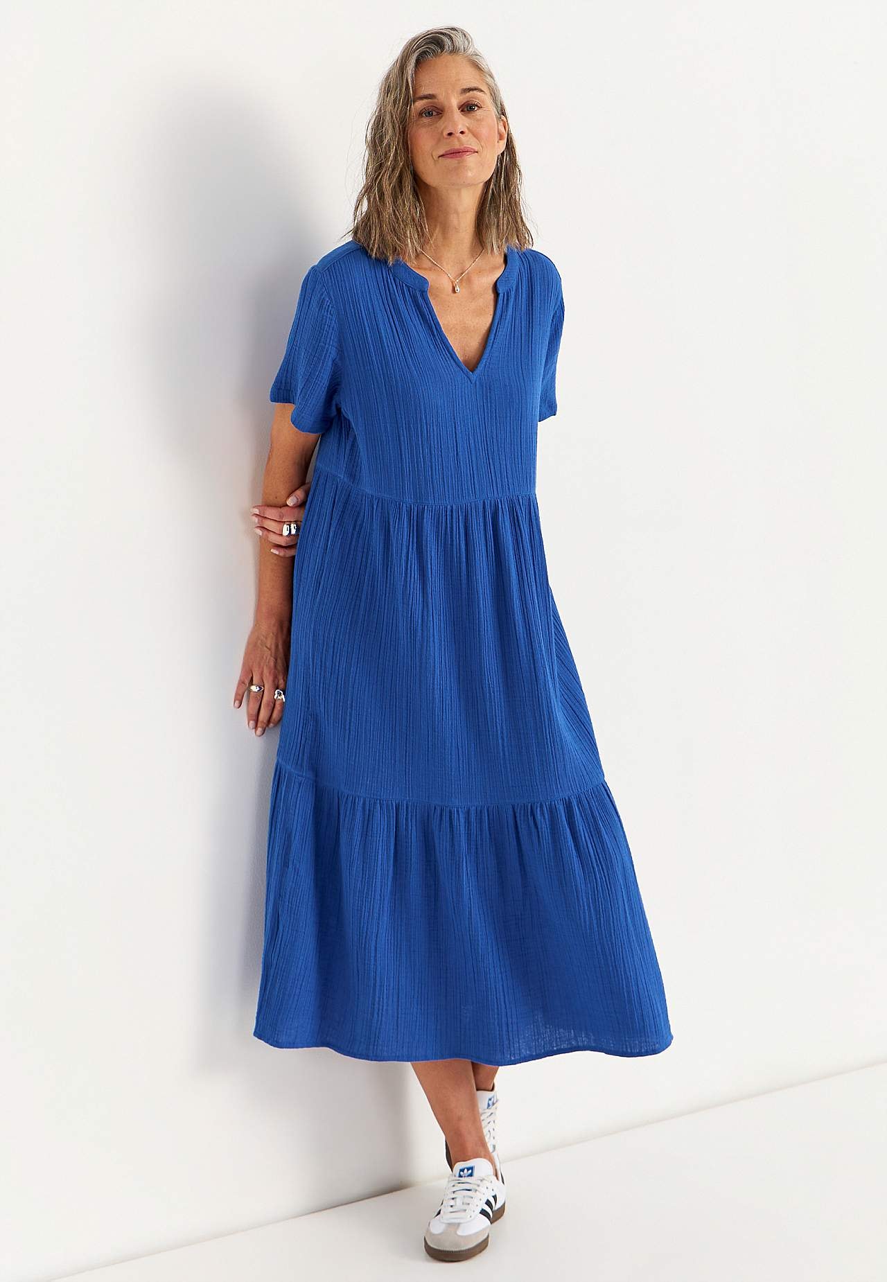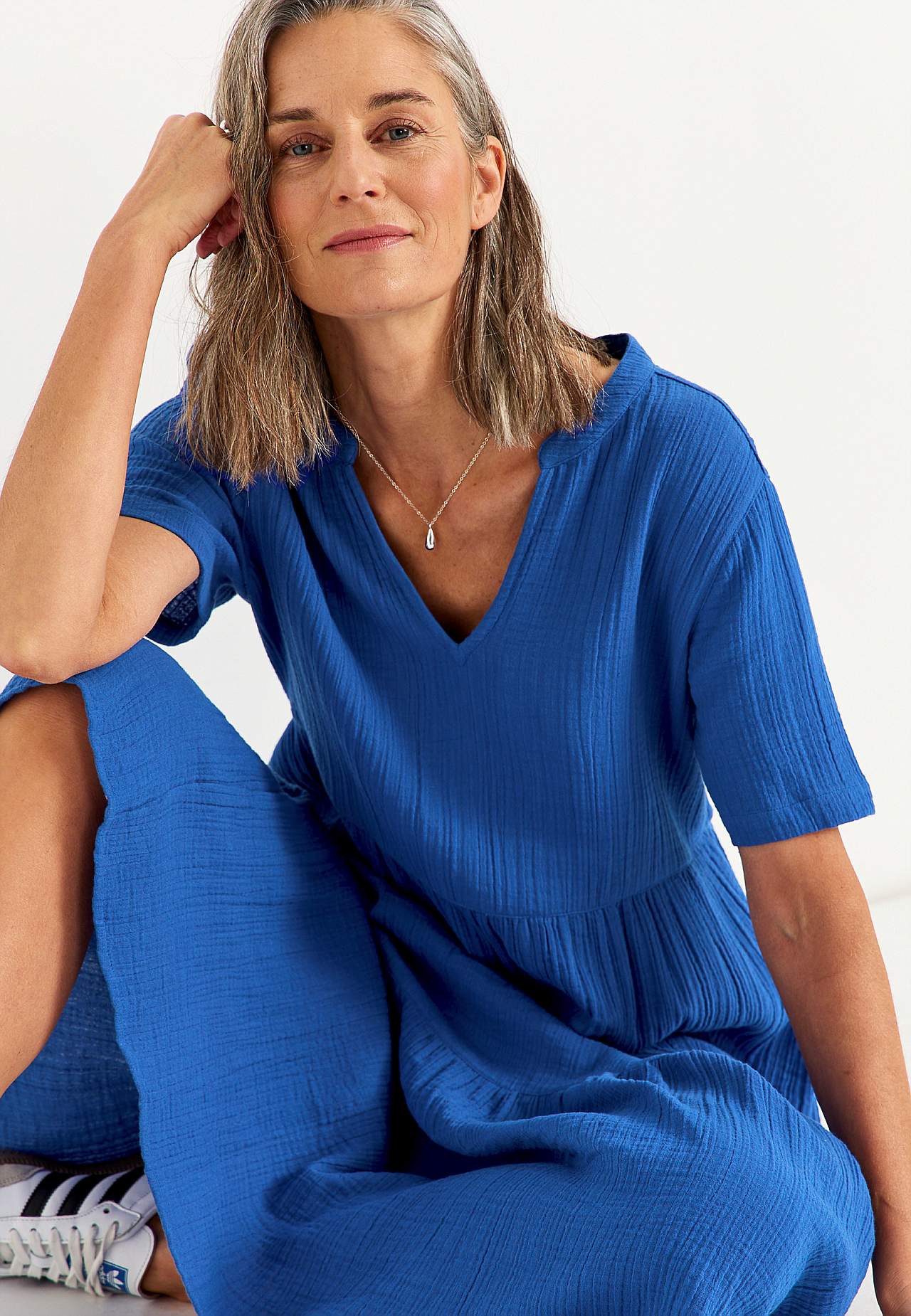 Dress in crinkled cotton