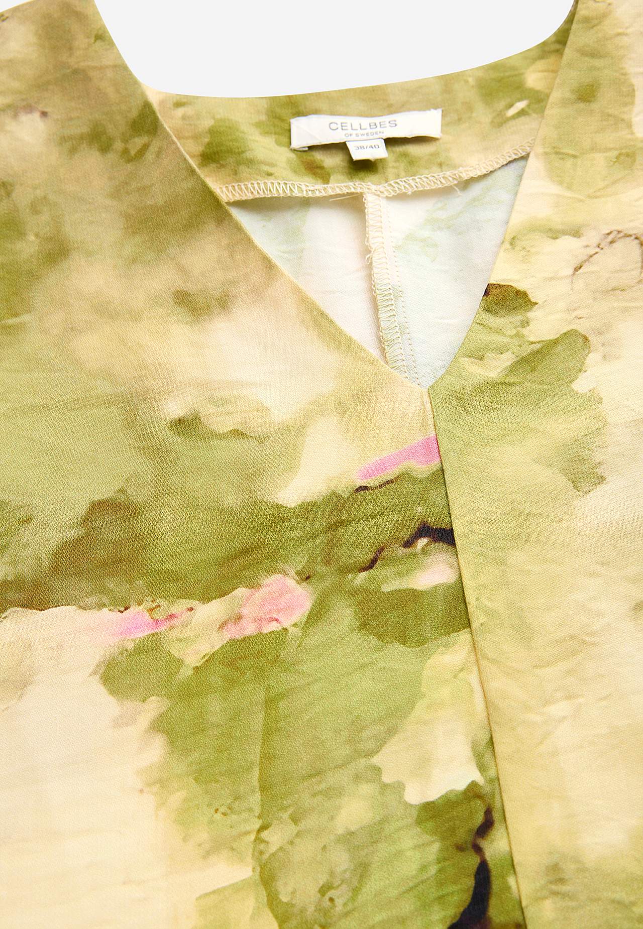 Straight, relaxed kimono dress in lovely airy viscose. Perfect for the summer party. Material with slightly shiny textured weave. Wide, straight fit. V-neck neck. Short, wide sleeves. Sewn tie strings at the waist tied at the front or at the back. Straight hem. Length from shoulder approx. 131 cm in all sizes.