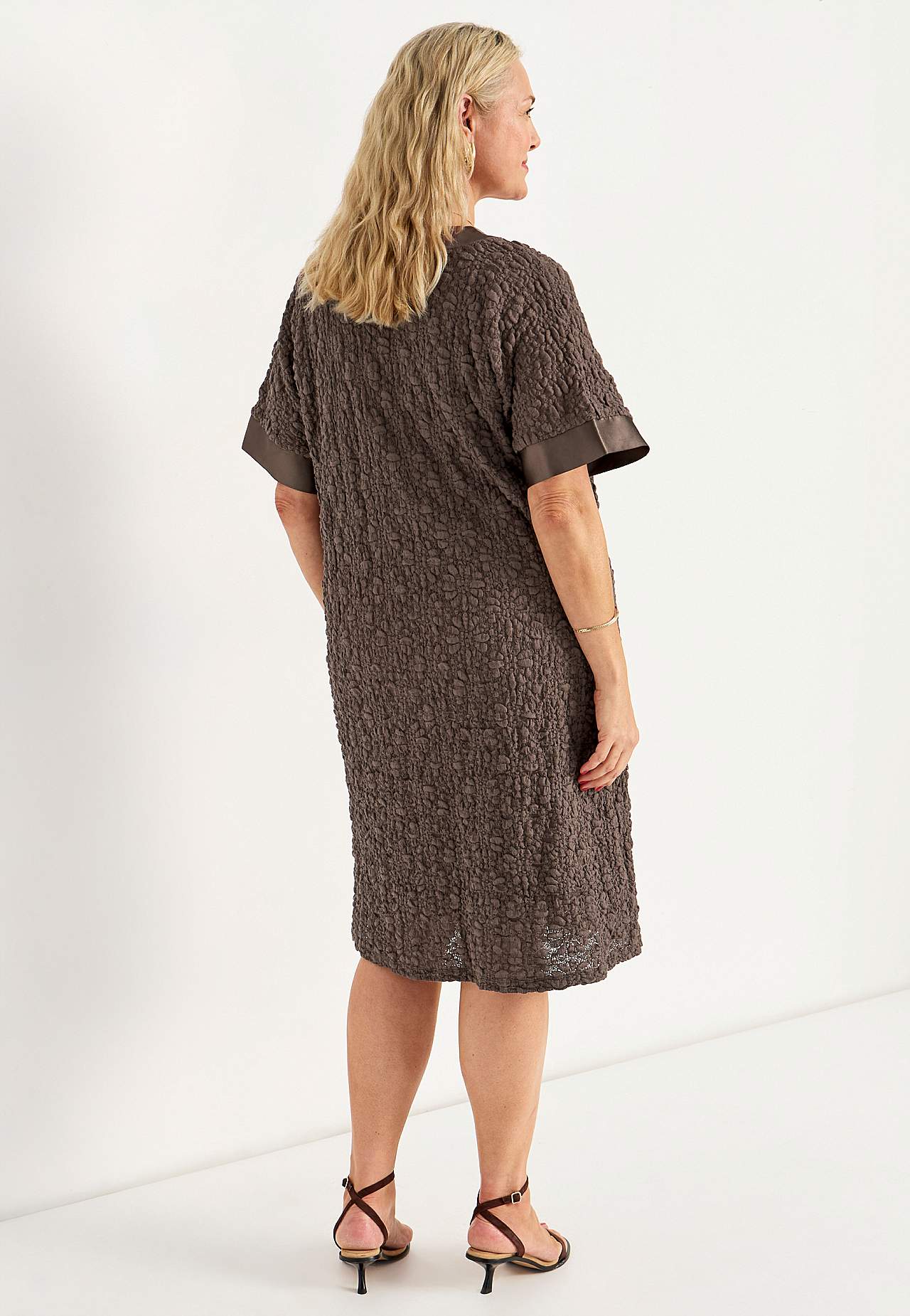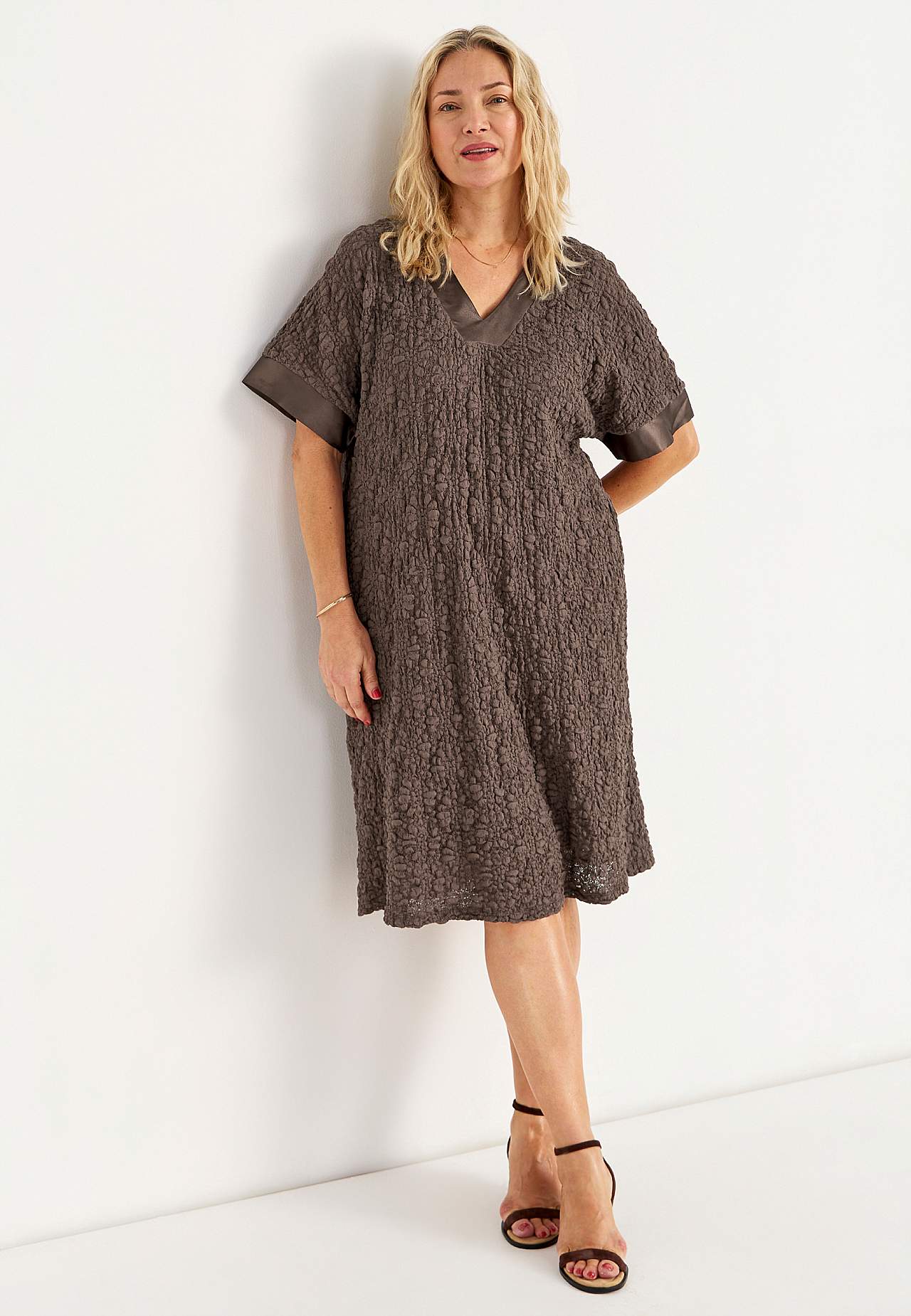 Lined party dress in lovely, stretchy lace jersey. Classy satin edge on the neckline and on the sleeve ends. Soft, stretchy lining in jersey. Slightly a-line-shaped, oversize fit with slightly more fitted upper. V-neck with satin edge. Wide, unlined kaftan sleeve with satin edge on the sleeve ends. Straight hem. The length ... Read more