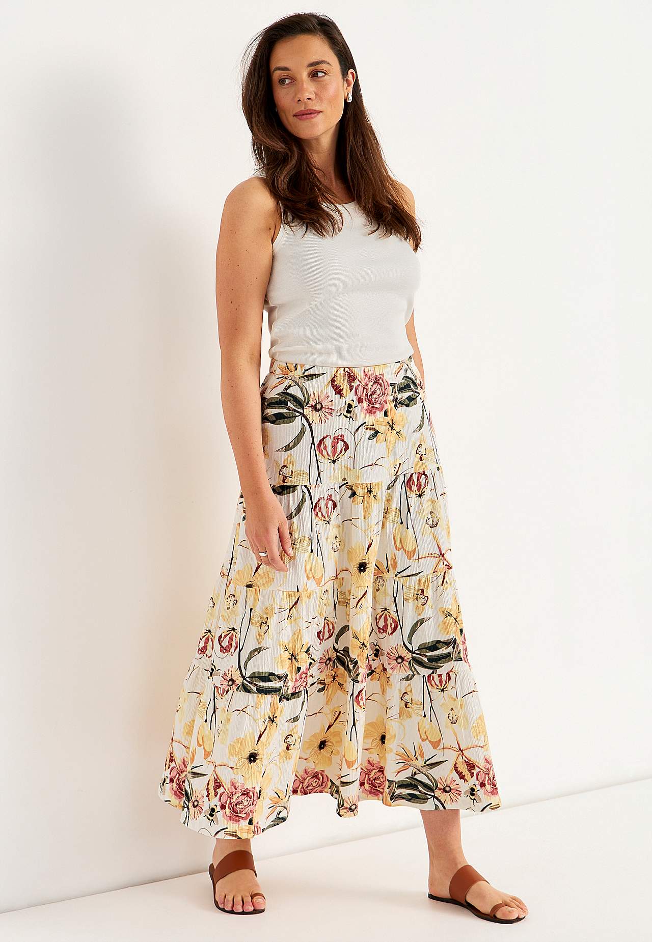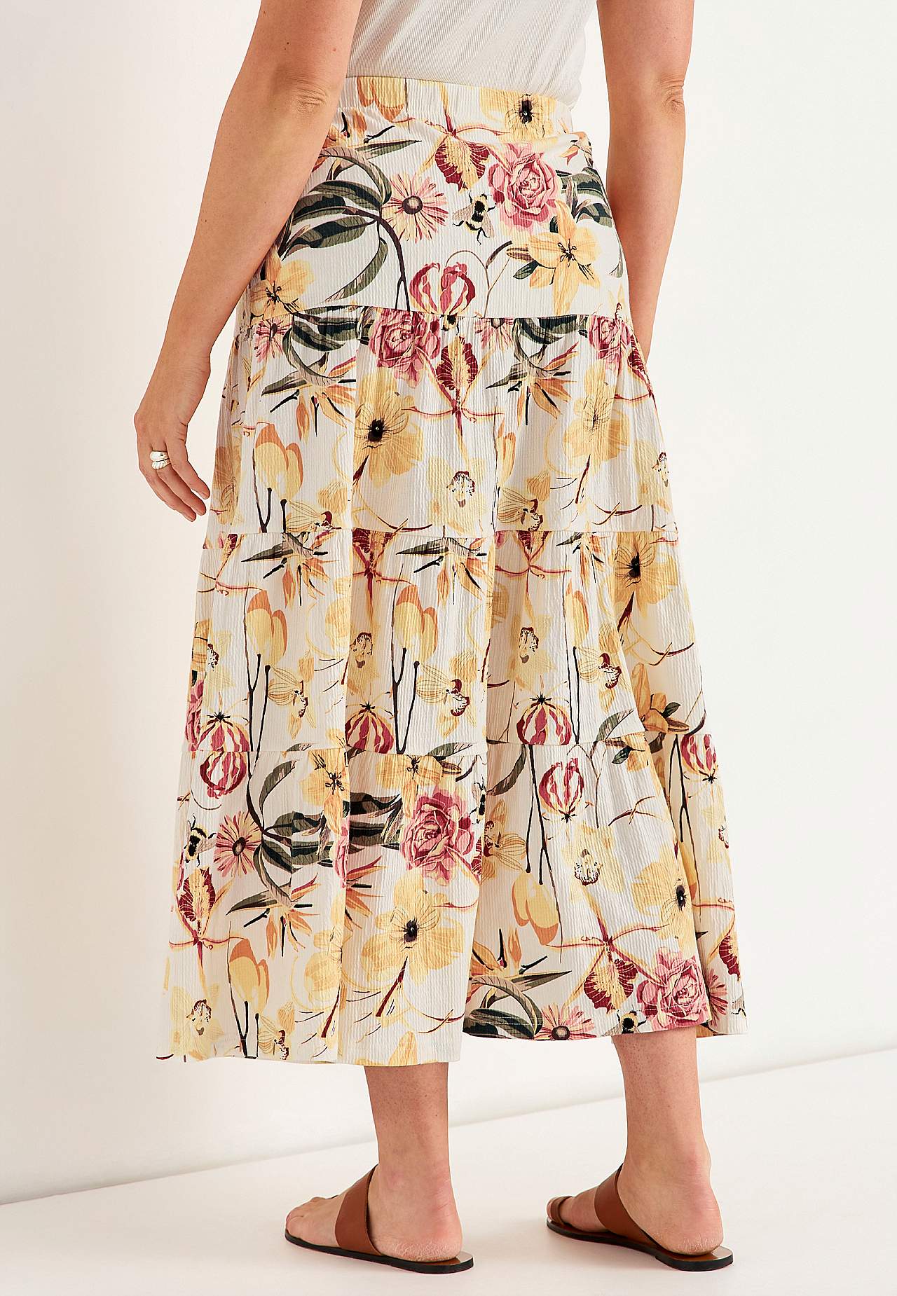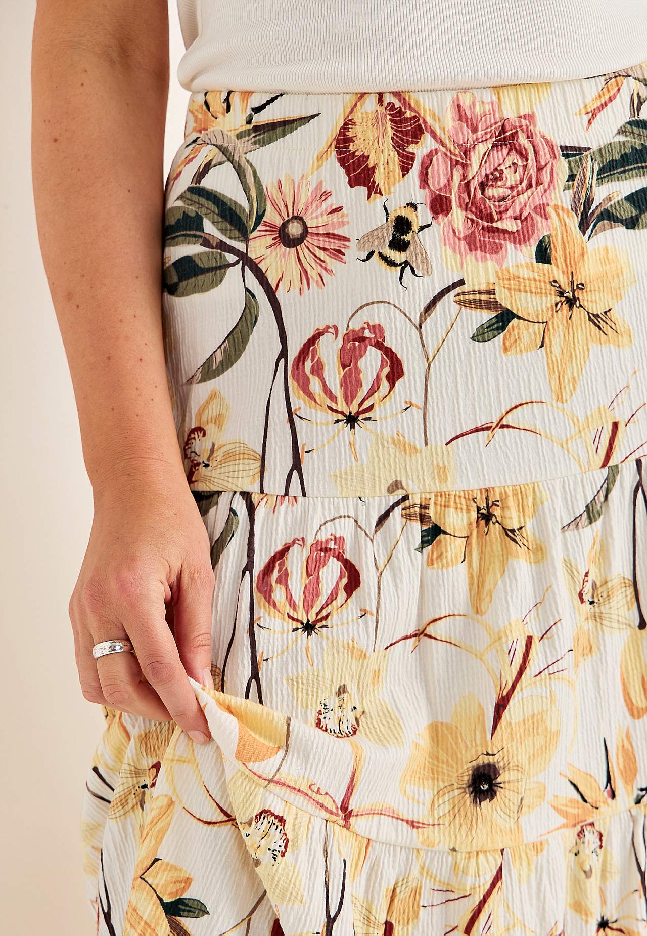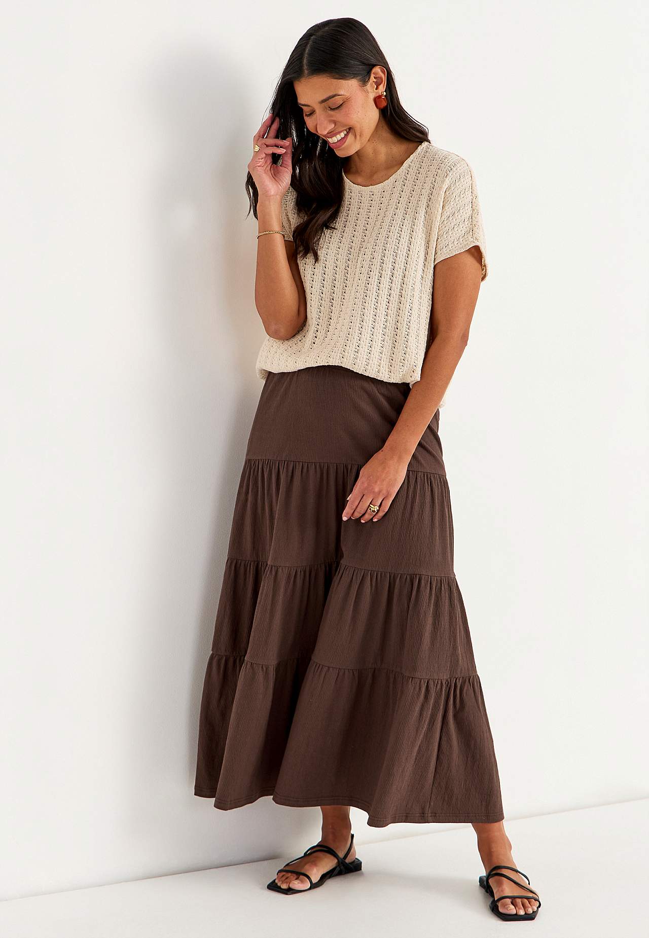 Soft, stretchy skirt with wavy structure. A-lined fit with width at the bottom. Waist with soft, wide elastic. Rounded hem. Combine with 701369. Length: 90 cm.