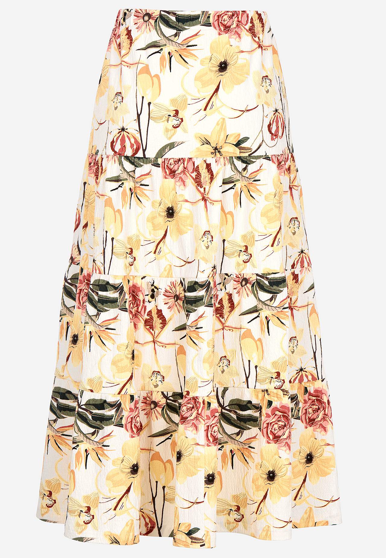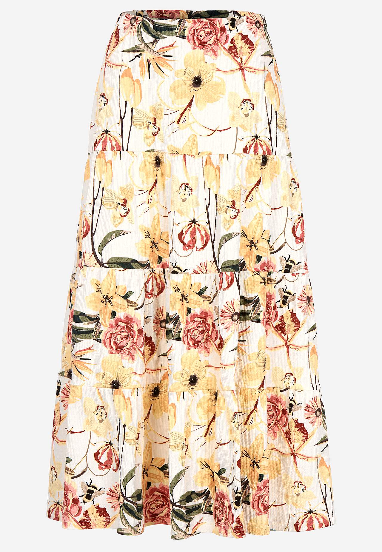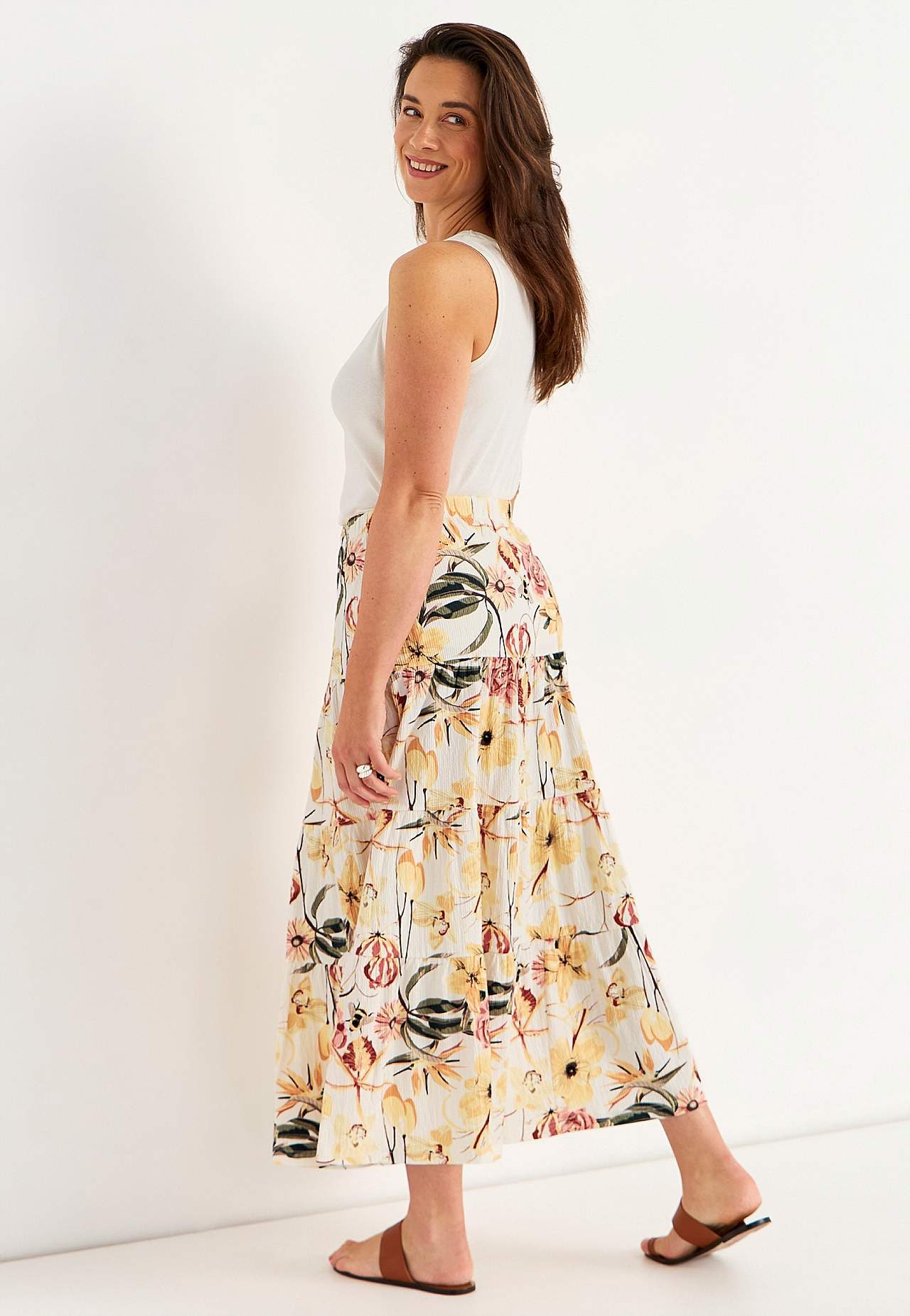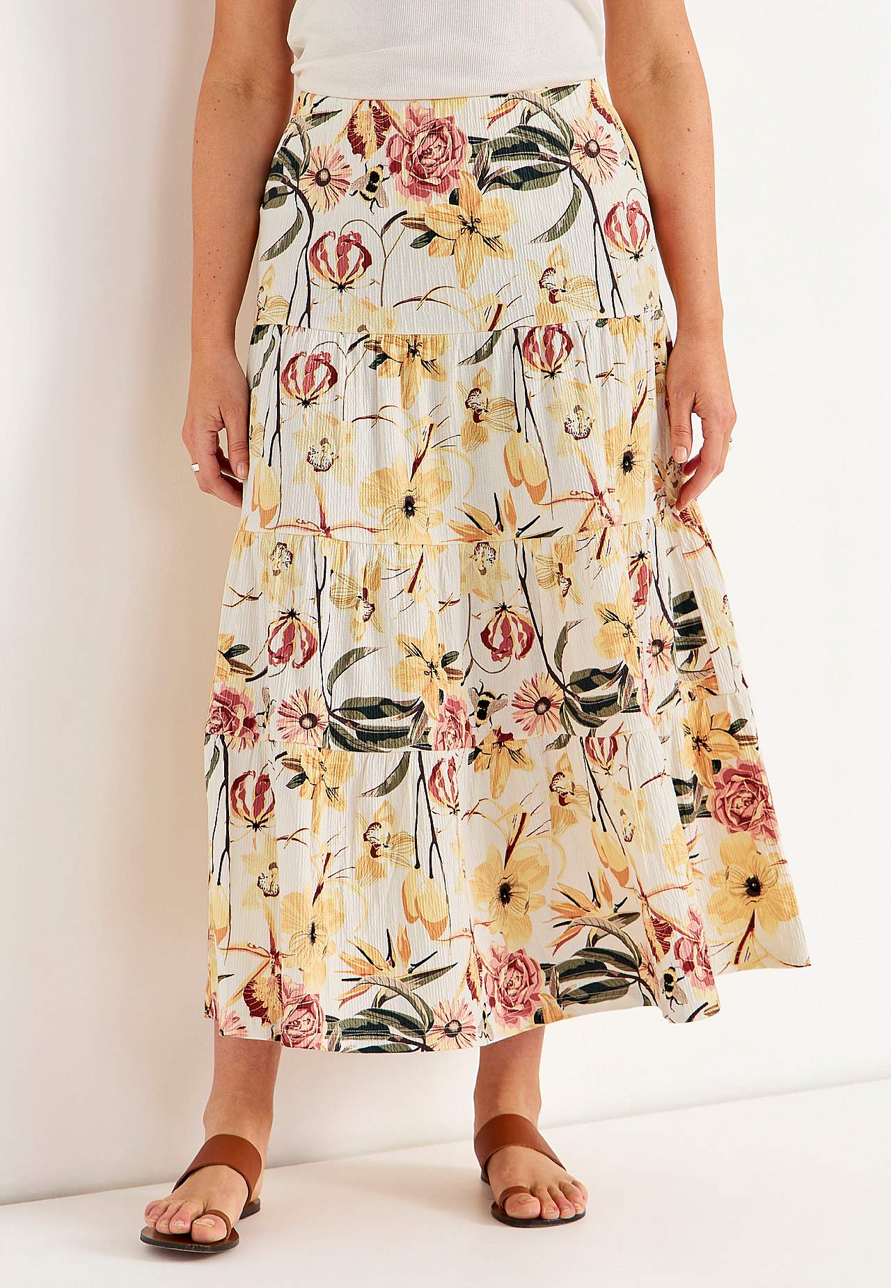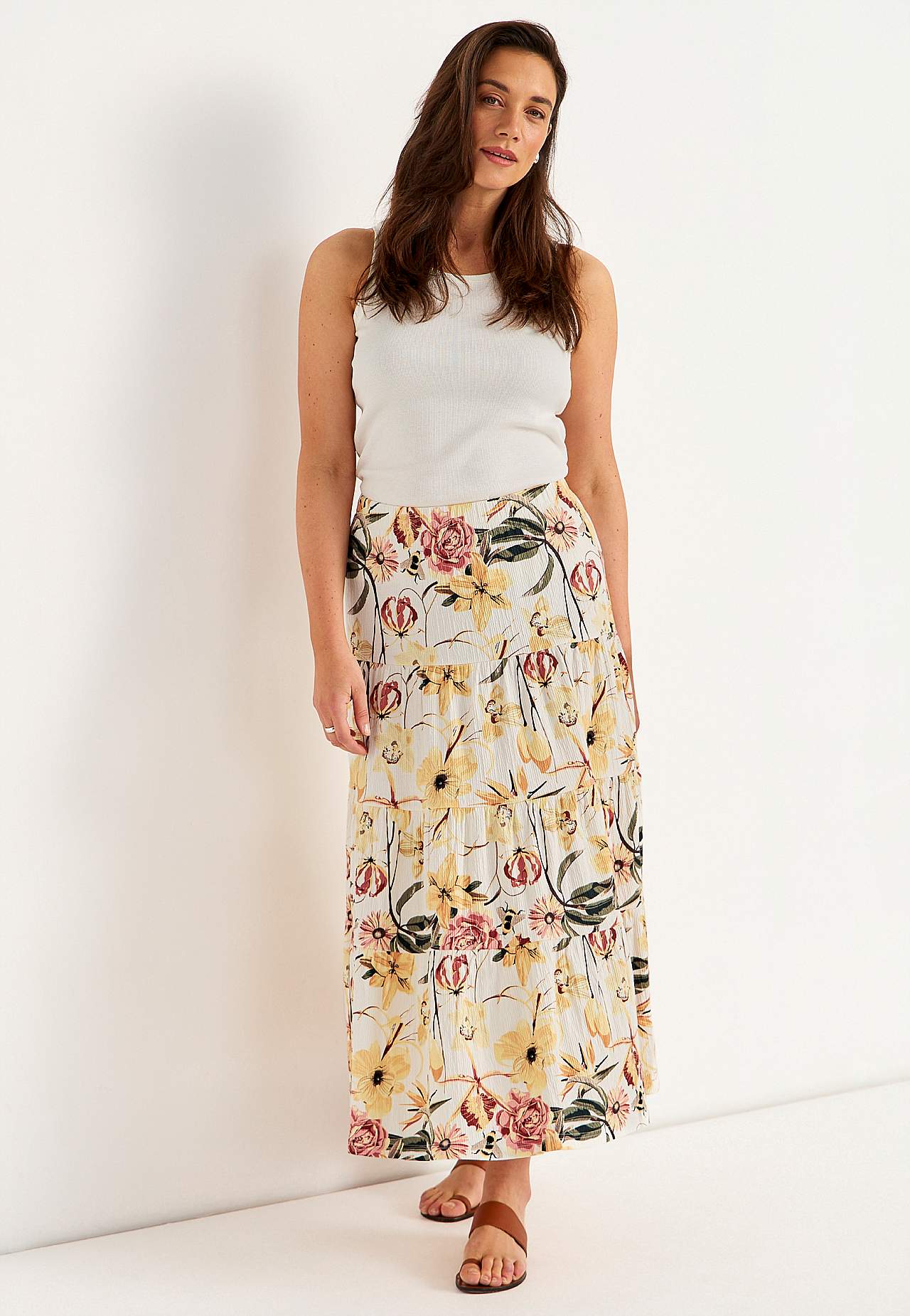 Soft, stretchy skirt with wavy structure. A-lined fit with width at the bottom. Waist with soft, wide elastic. Rounded hem. Combine with 701369. Length: 90 cm.