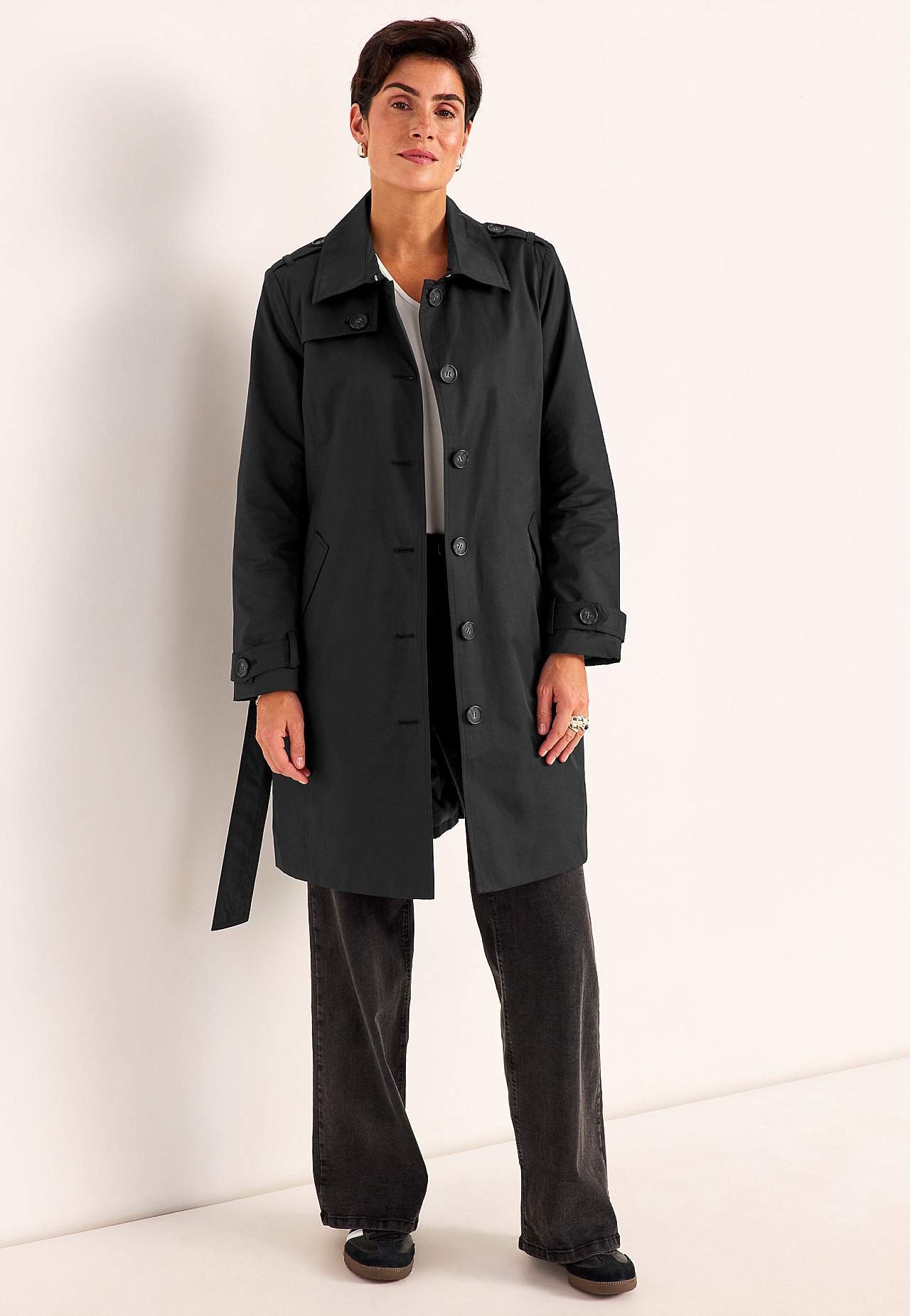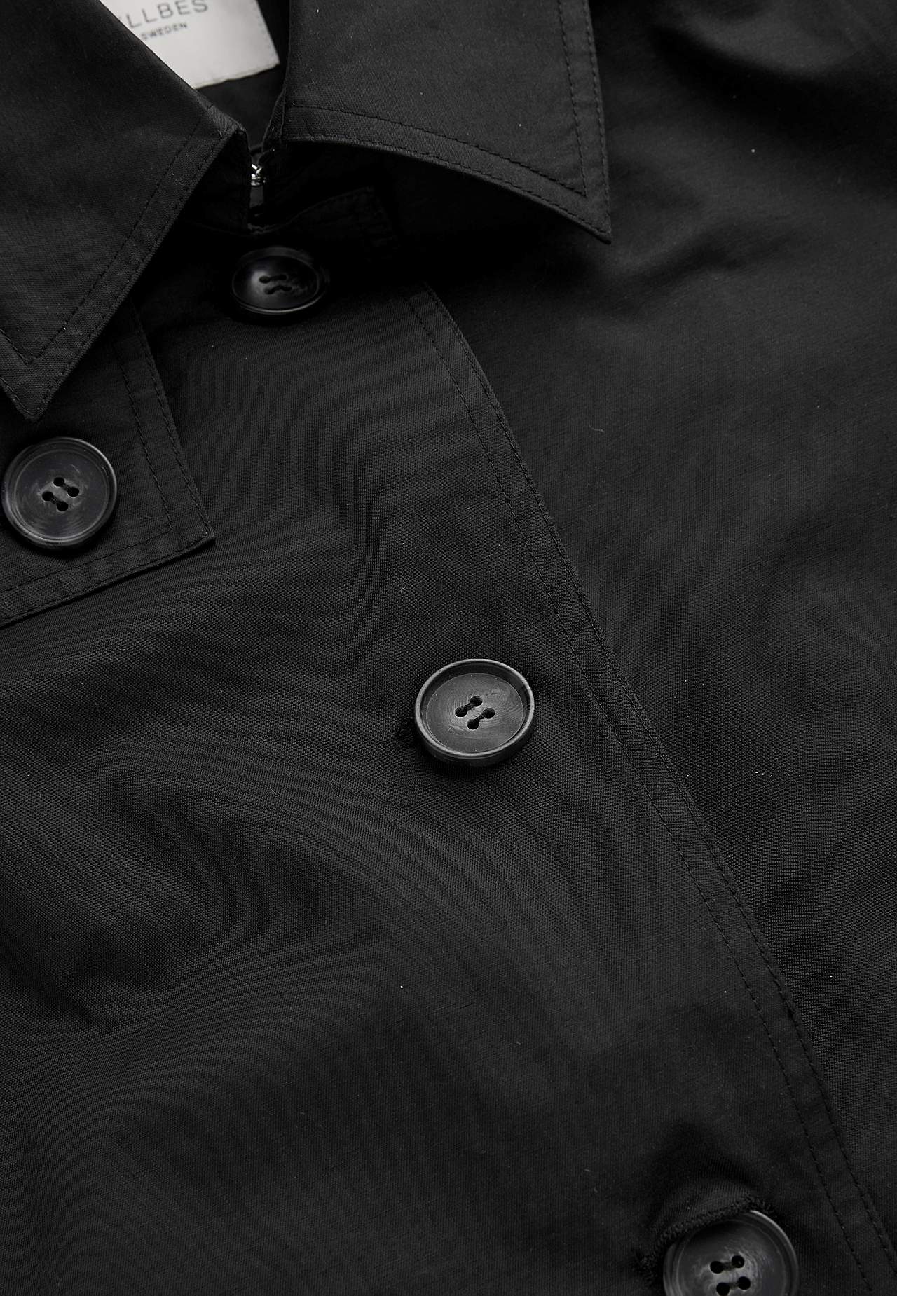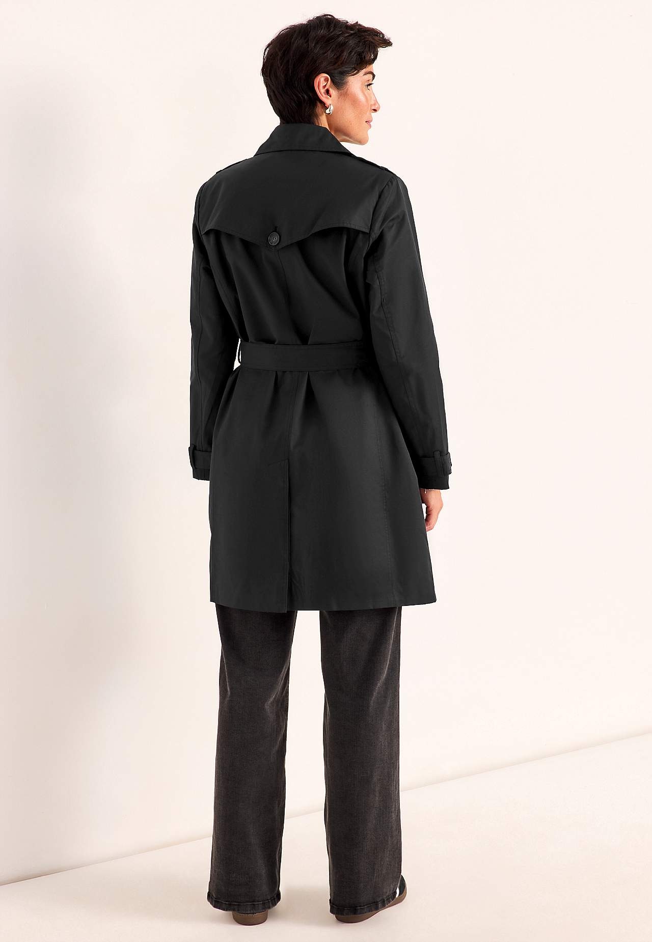 Water repellent, fully lined trenchcoat. Small shoulder pads on the inside. Welt pockets at the side seams. Inner pocket. Straight cut hem with slit on the back and two buttons. The length varies with size: about 97-111 cm from the shoulder.