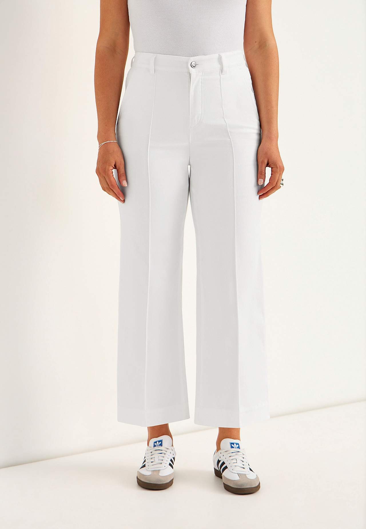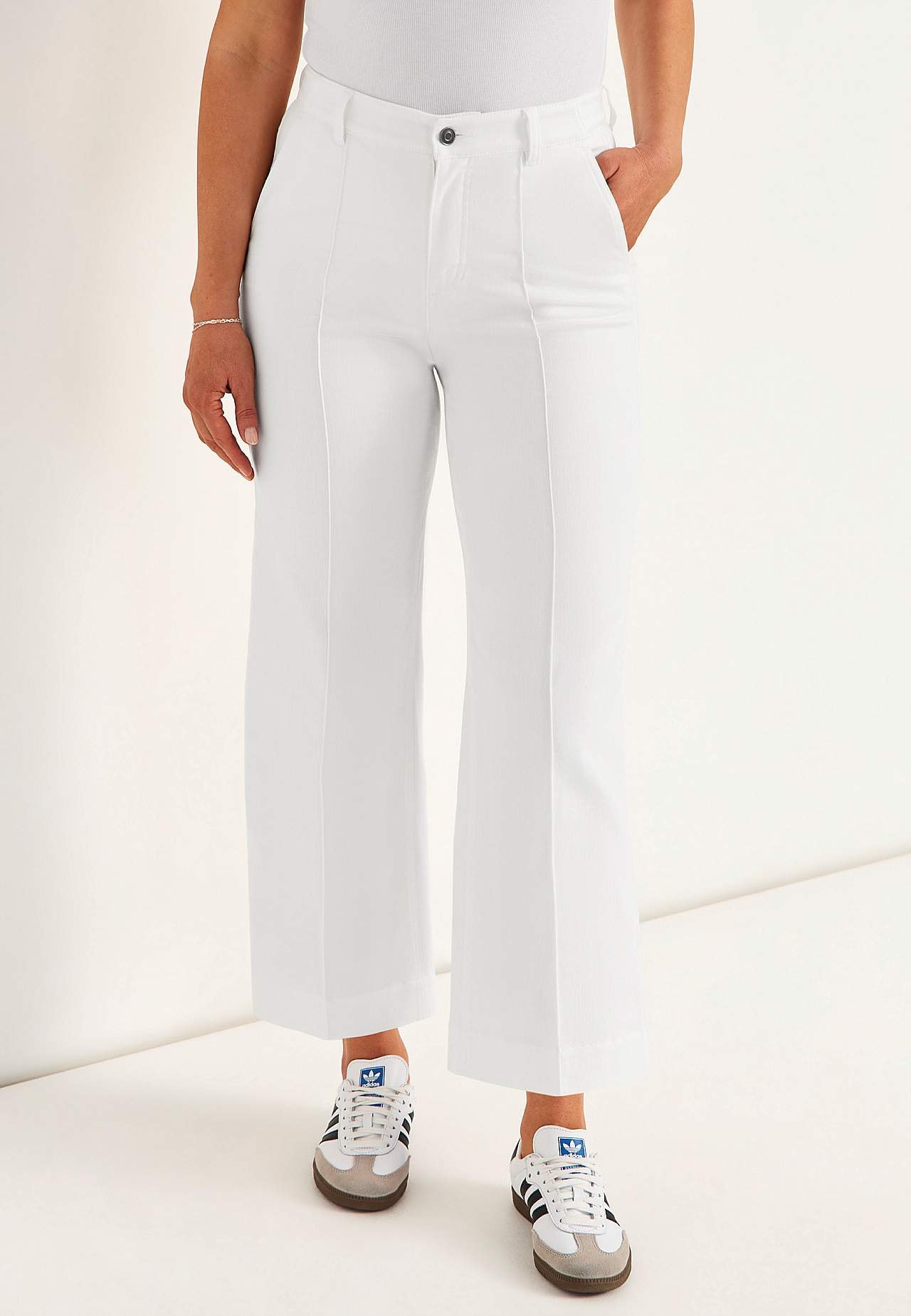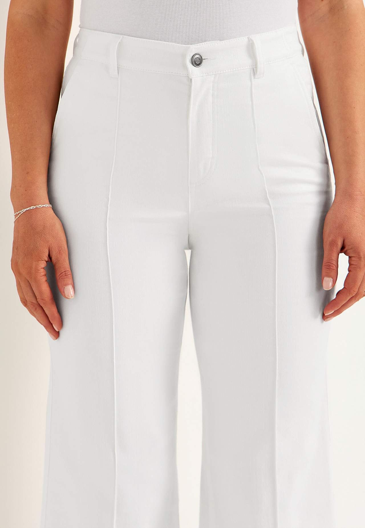 Ankle jeans in soft denim with a stretch. Straight design with wide legs. Loose fit. Slightly more fitted at the seat. Regular waist. Waistband with belt loops. Zip with button. Side slanting pockets at front. Stitched creases at front. Mock slit pockets on the back. Inner leg length is approx. 65 cm in all sizes. Front ris... Read more
