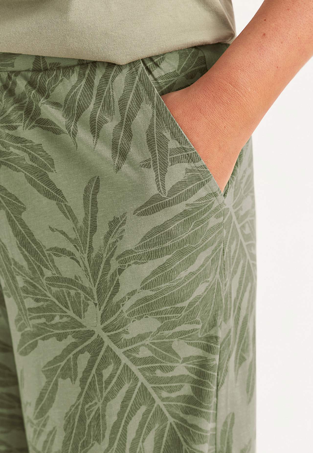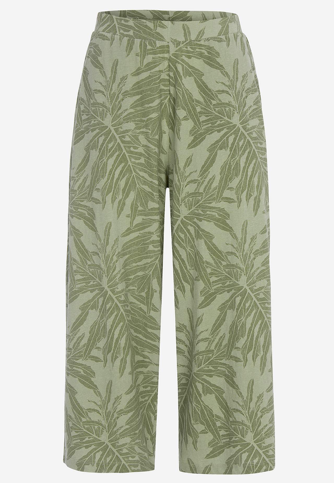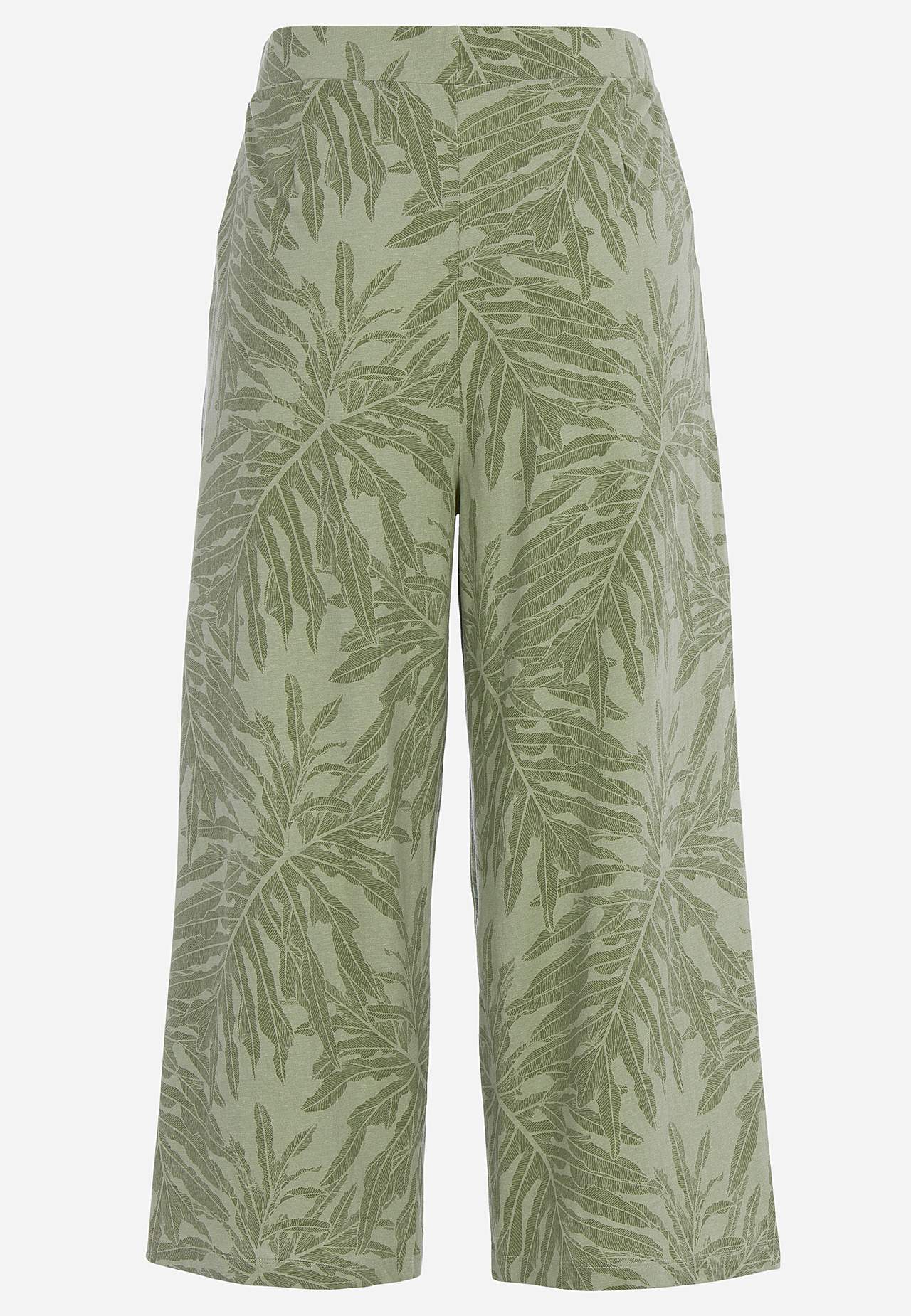 Culottes in soft, organic cotton. Jersey pants with wide, straight legs. Casual fit. High waist with wide, comfortable elastic waistband. Slanted side pockets. Combine with 702634. Inner leg length varies with size: about 57-59 cm. Front rise varies with size: about 29-39 cm.