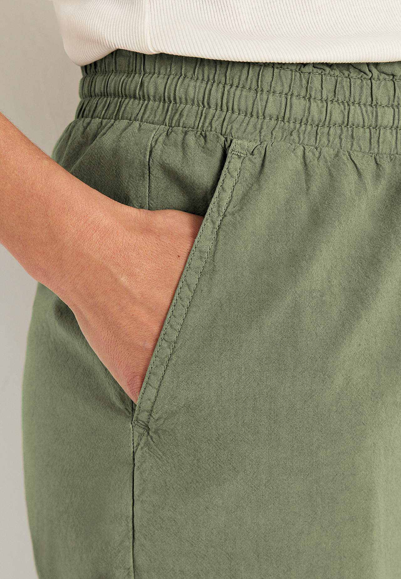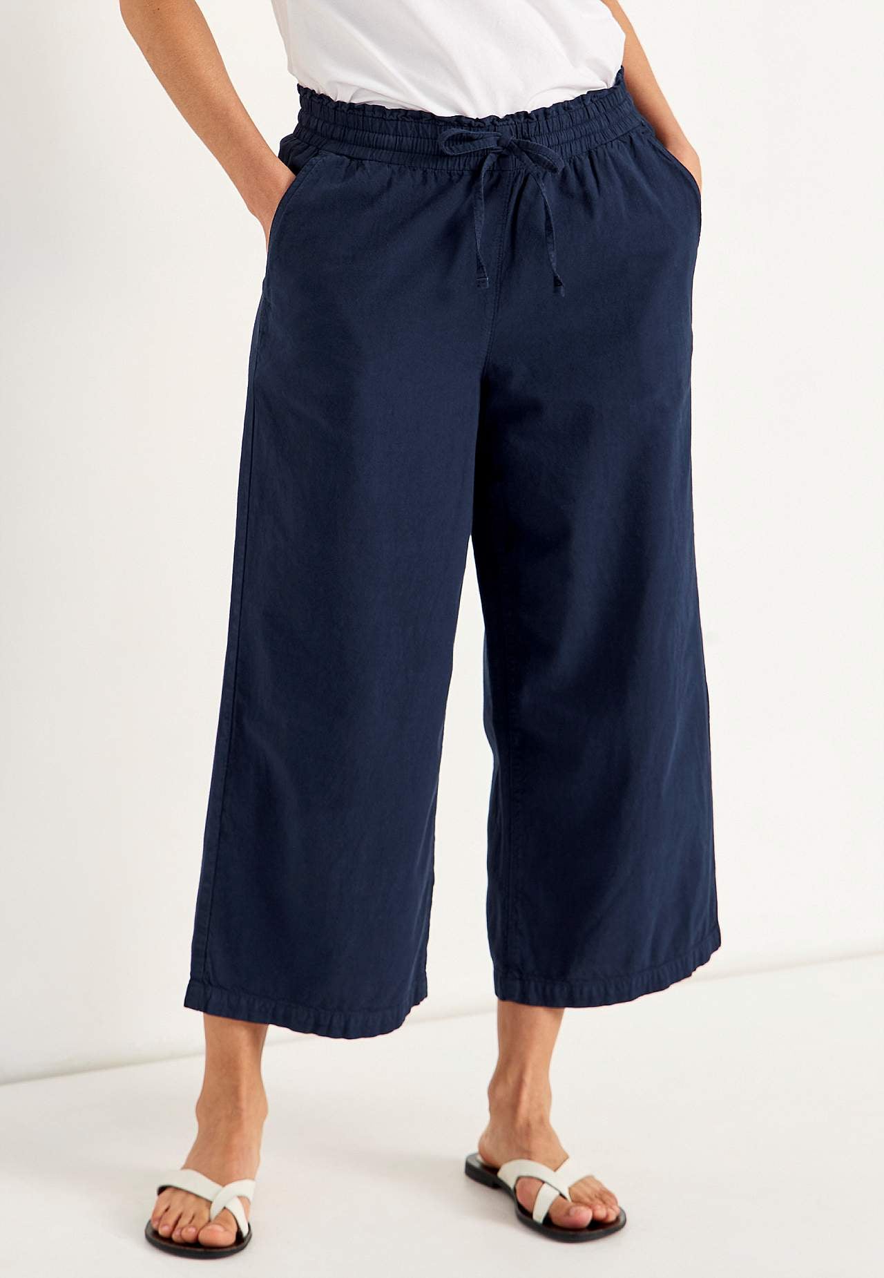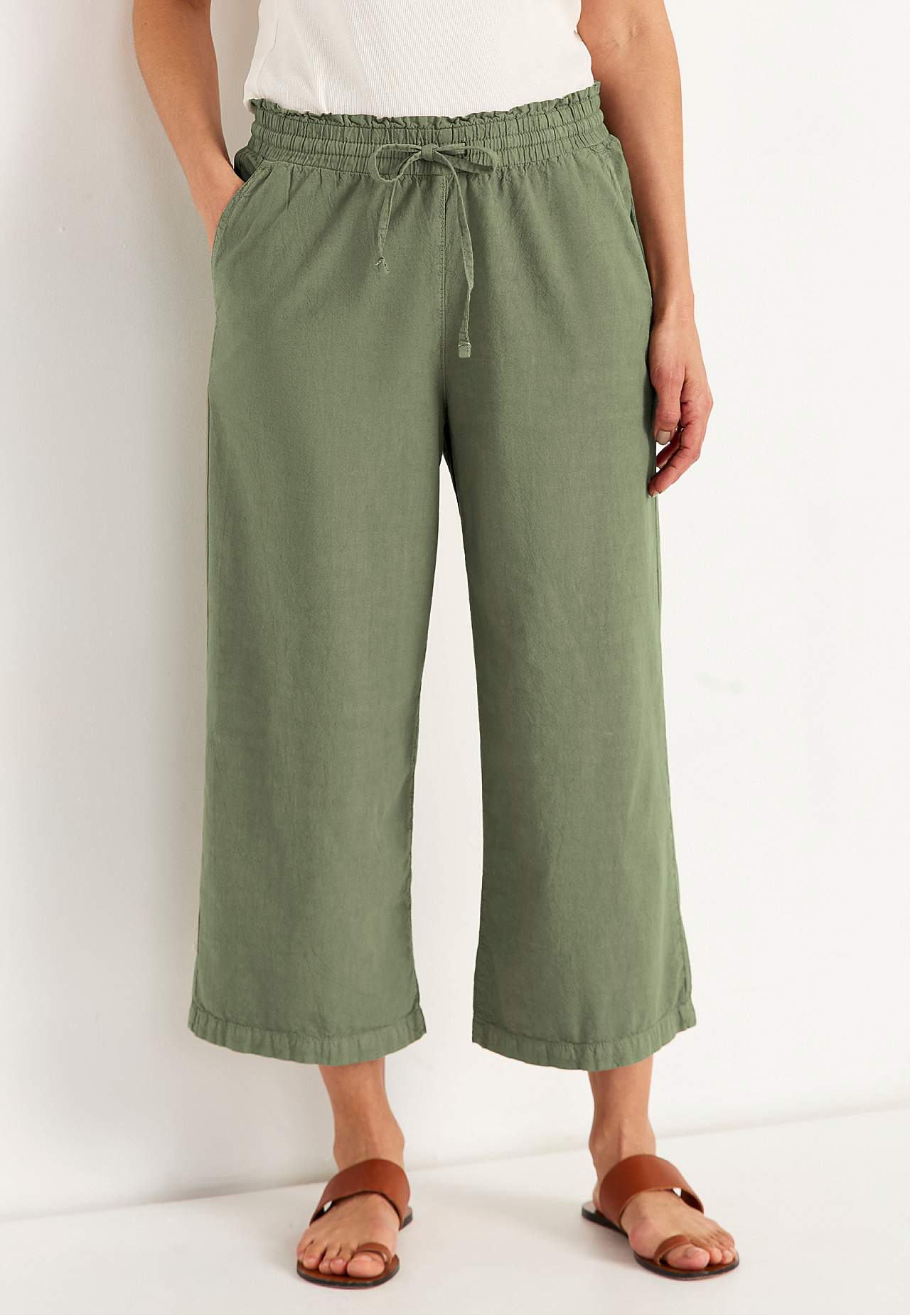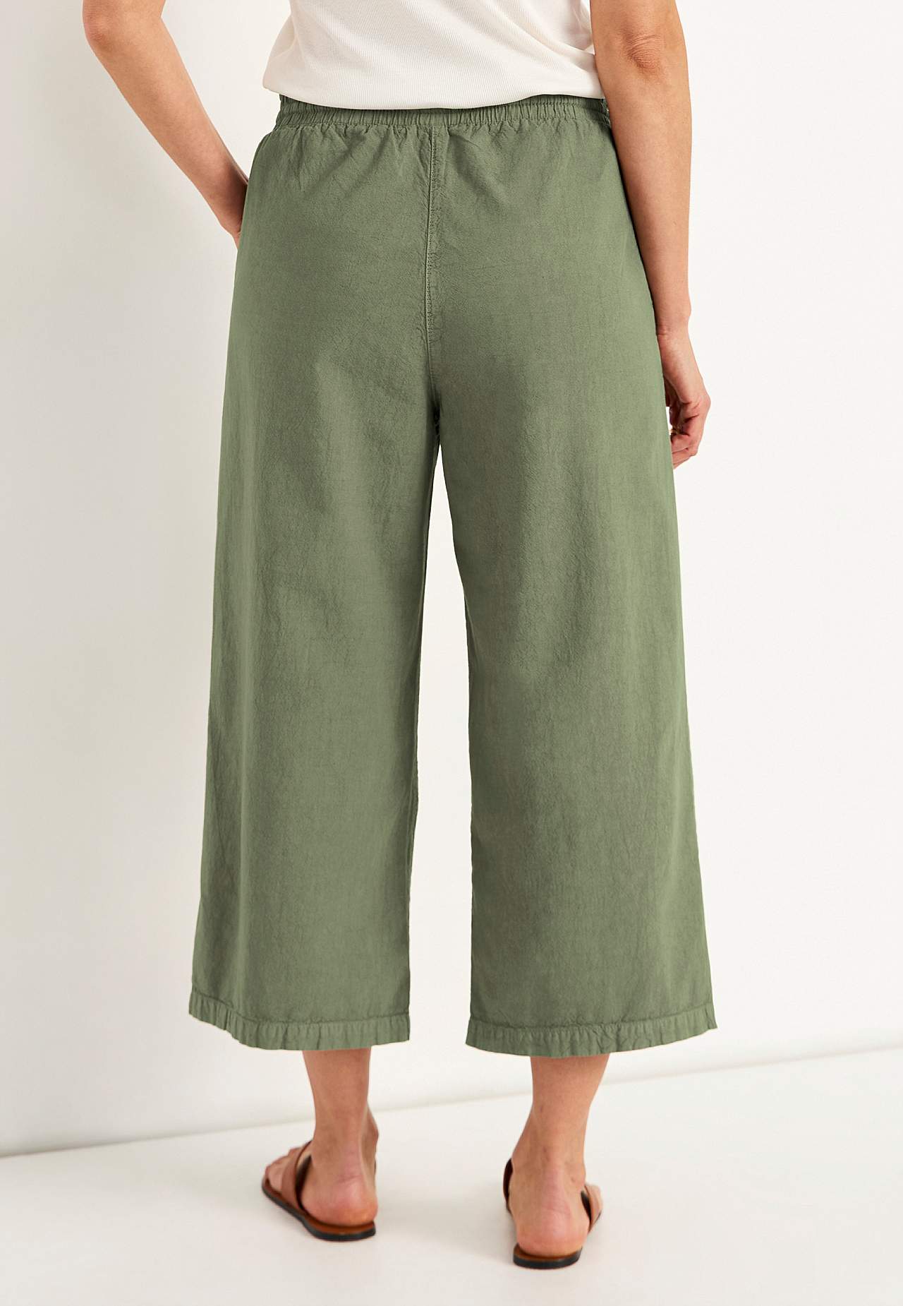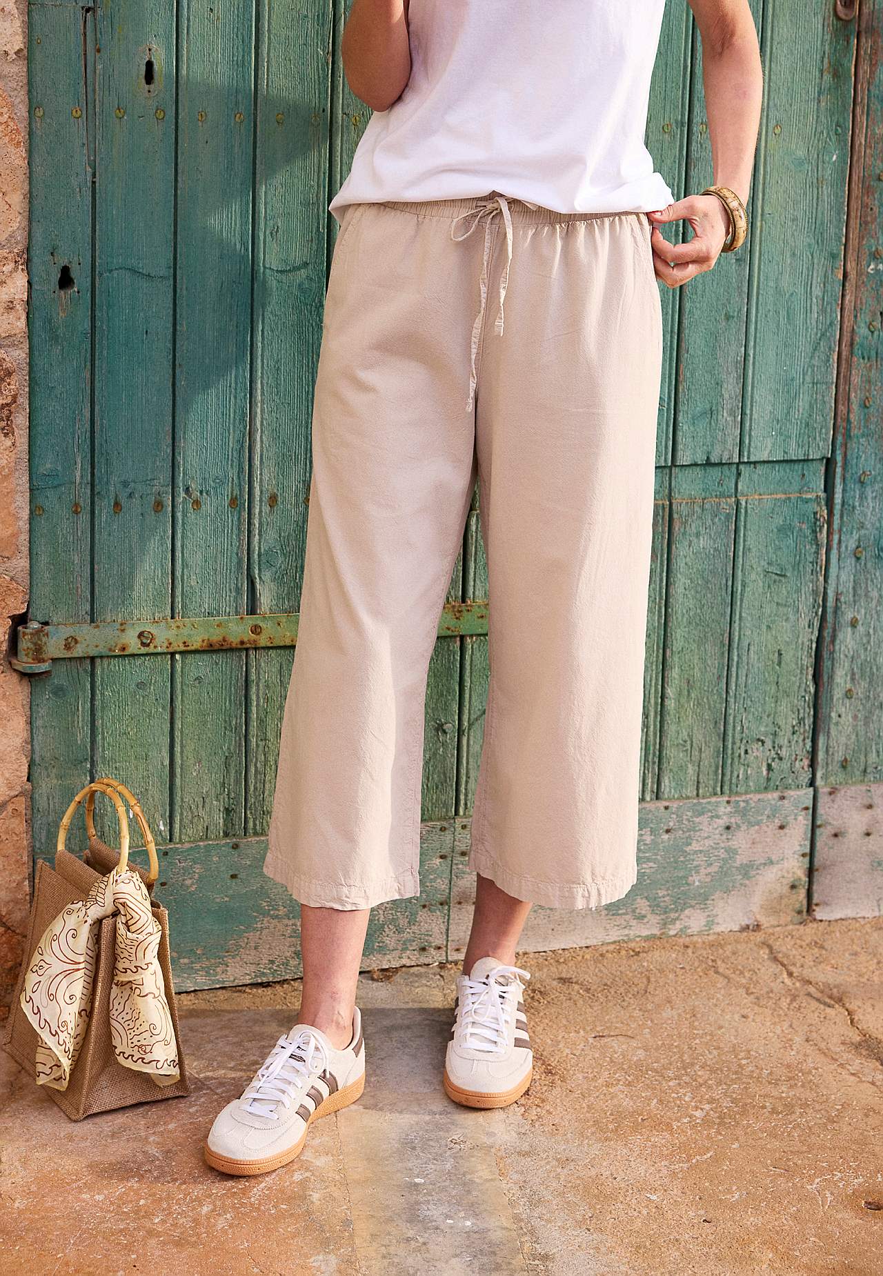 Relaxed culotte trousers. Woven material in washed, supple cotton with natural touch. Loose fit. Comfy, elastic rise with drawstring. Slanted front pockets. Wide, straight legs. Inner leg length is approx. 57 cm in all sizes. Front rise varies with size: about 27-37 cm.