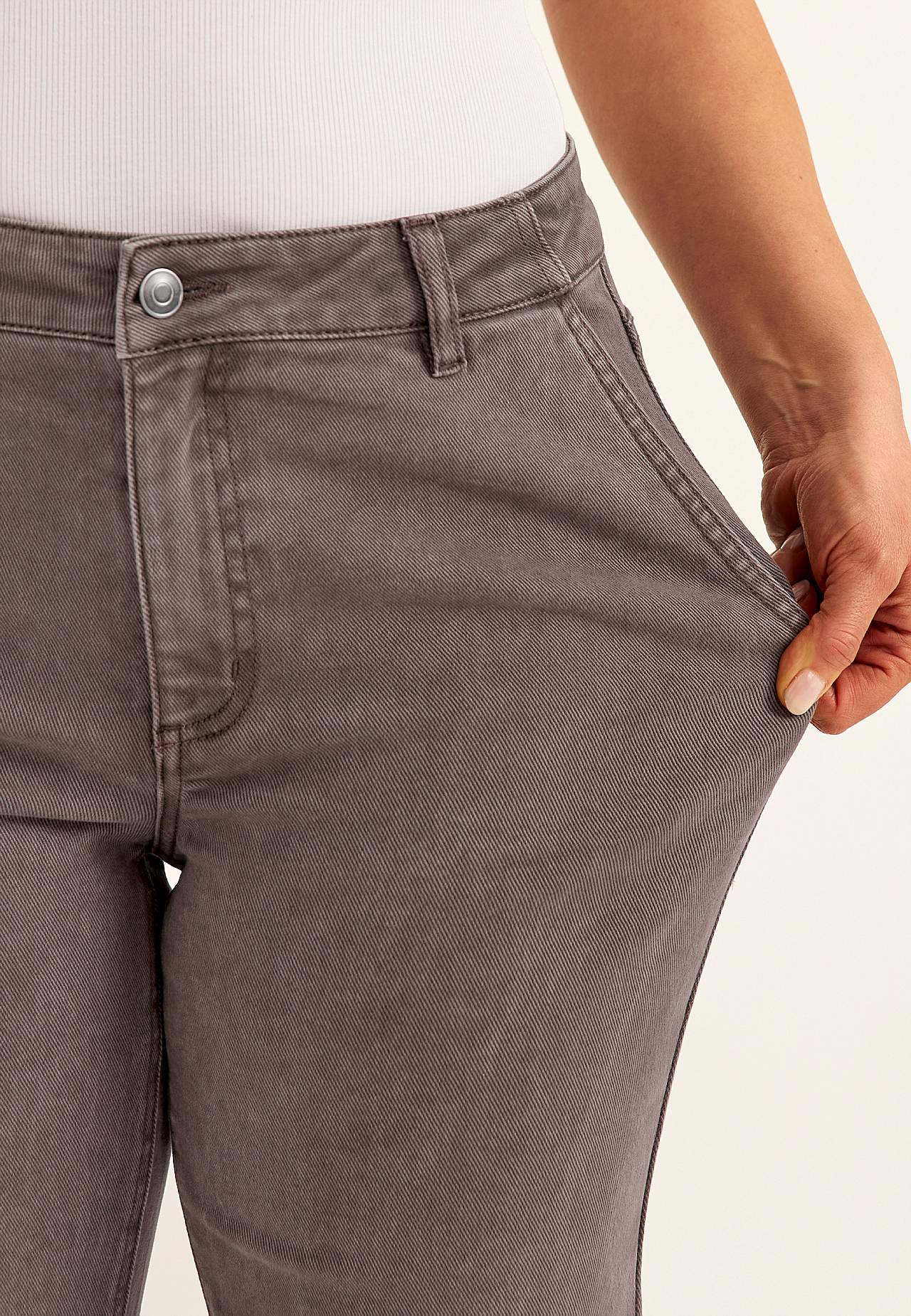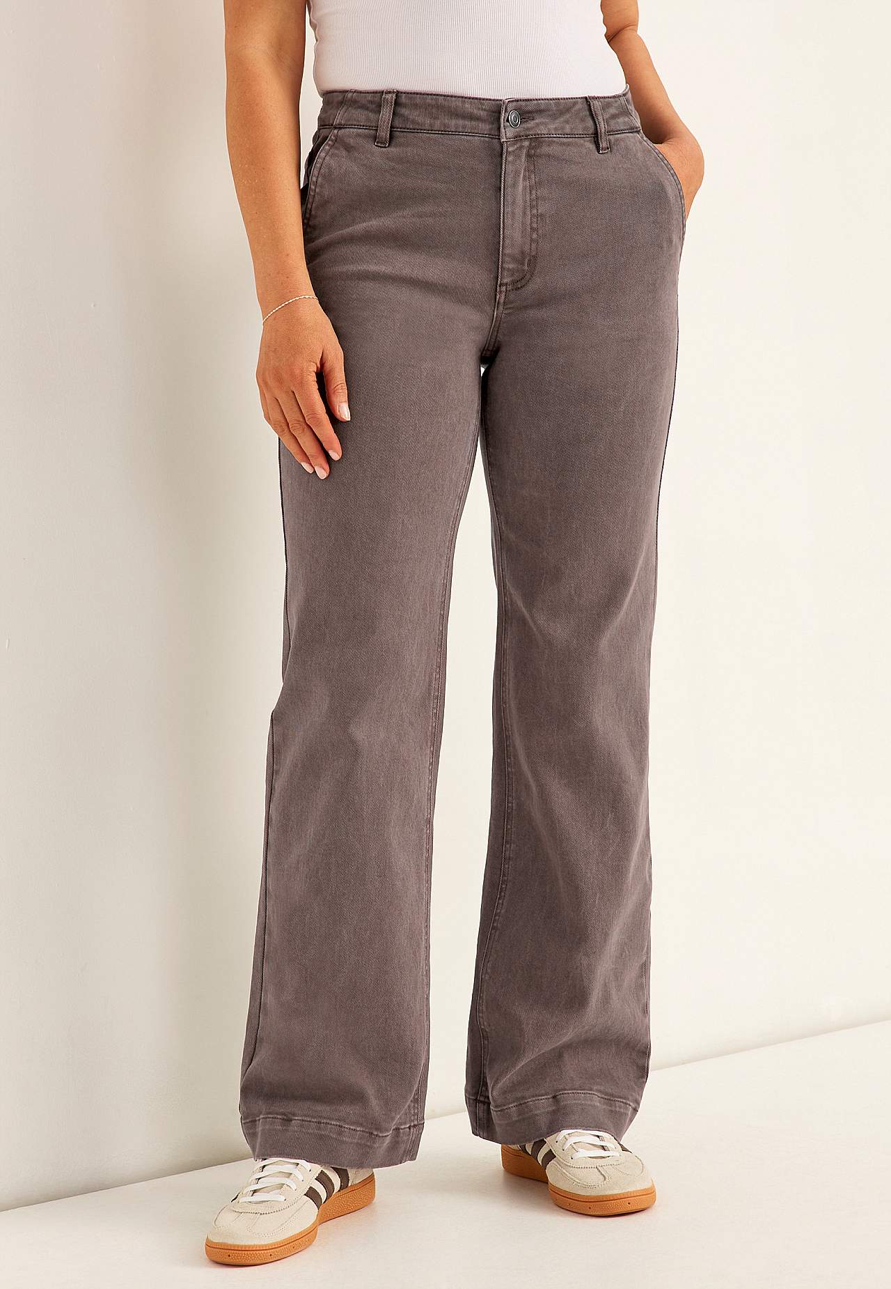 Garment dyed trousers in soft, slightly heavier cotton twill with stretch. Stylish washed look with natural color variations. Regular fit. Regular waist. Zip with button. Slanted front pockets. Wide, long legs. Waistband with belt loops. Inner leg length is approx. 80 cm in all sizes. Front rise varies with size: about 24-3... Read more