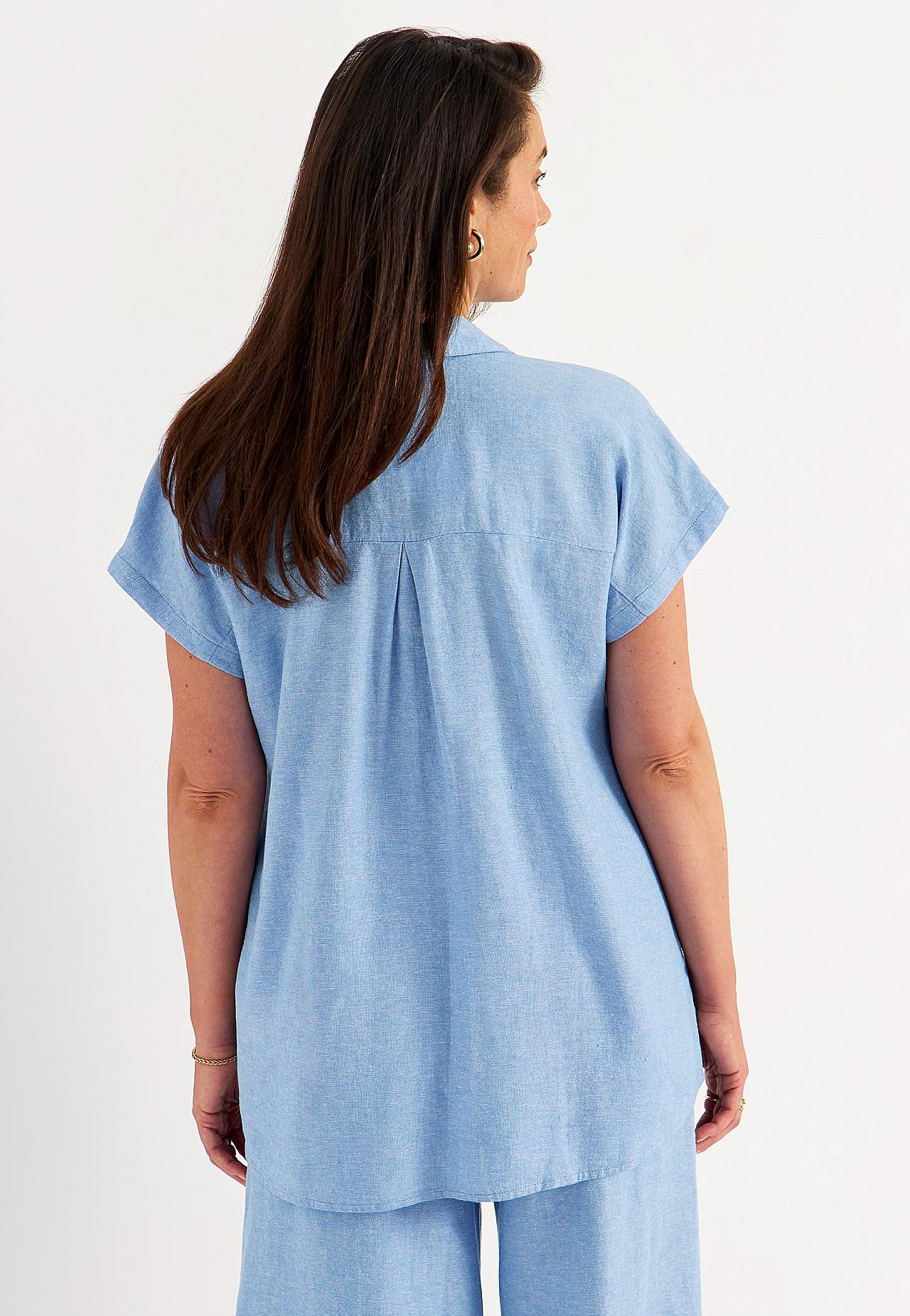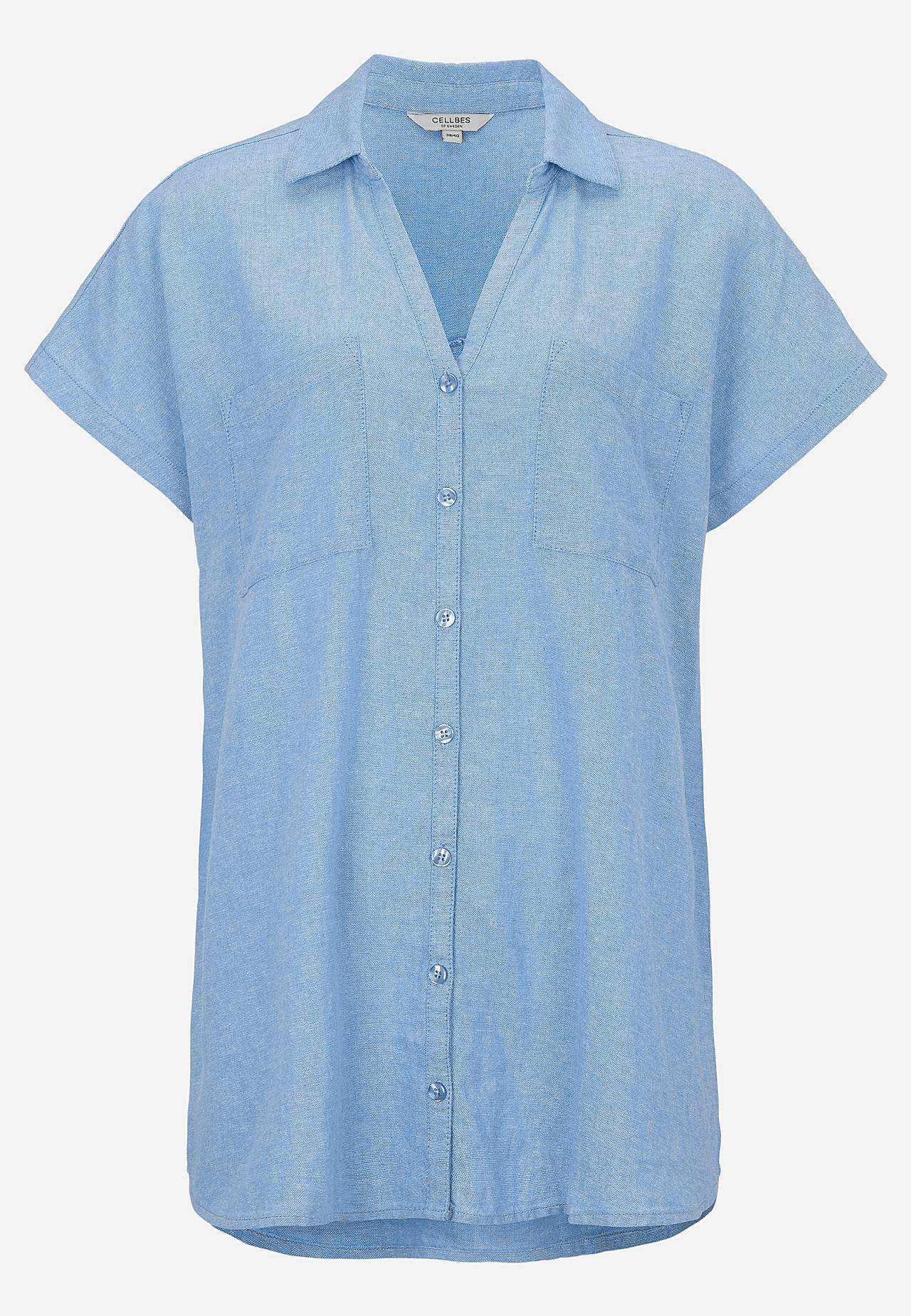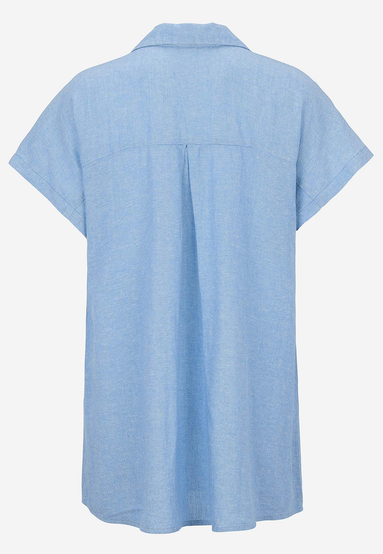 Woven long shirt in airy linen- and viscose mix. Soft, slightly heavier material with natural structure. Casual fit. Chest pockets. Yoke on the back with decorative pleat. Rounded hem. The length varies with size: about 77-84 cm from the shoulder.