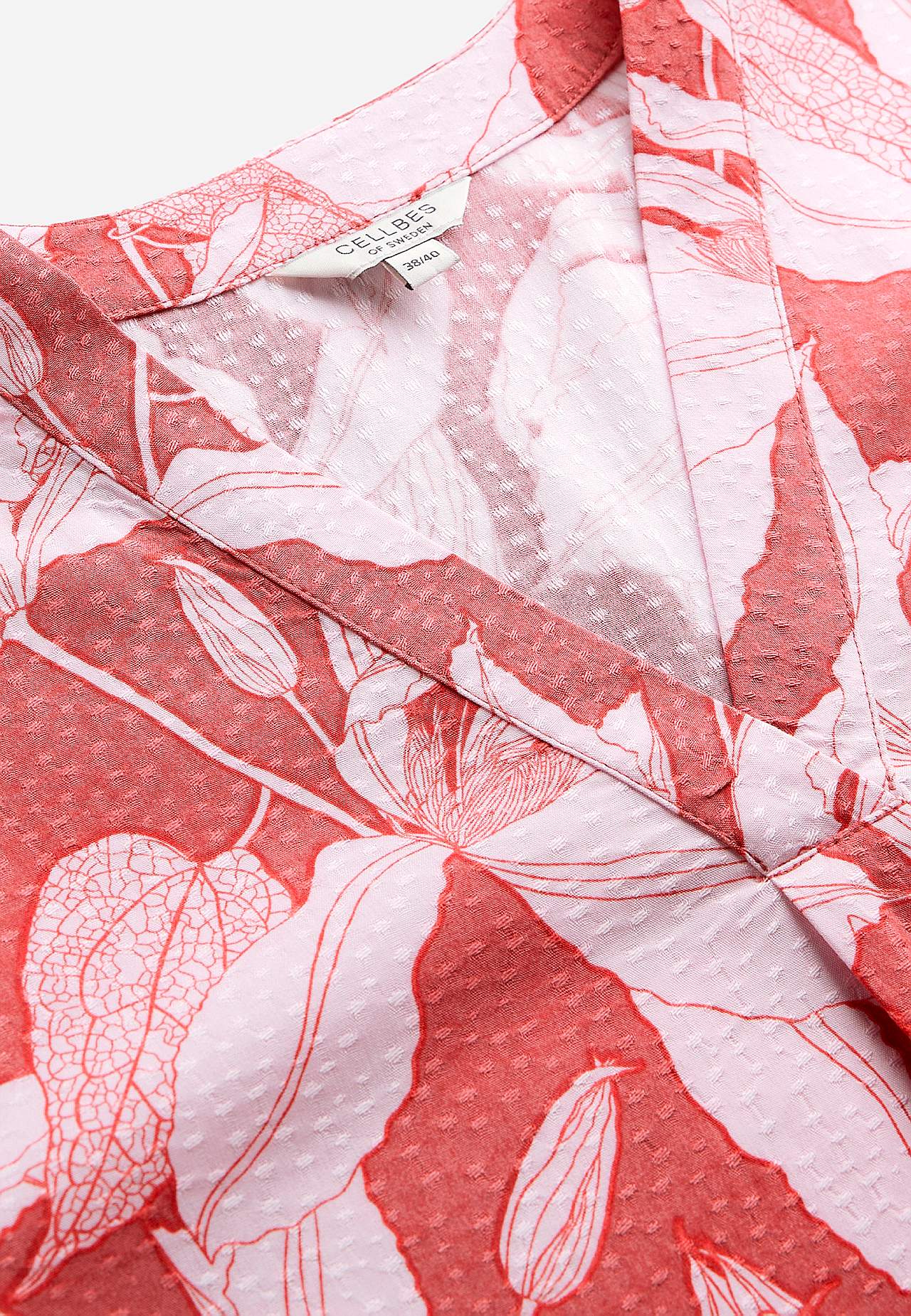 Party blouse in viscose with lovely draping. Dobby woven soft fabric with a unique pattern with a nice texture. In the same shade print with a flower pattern. Regular fit with slightly wider bottom part. V-neck with a pleat at the front. Rounded hem. The length varies with size: about 64-76 cm from the shoulder.