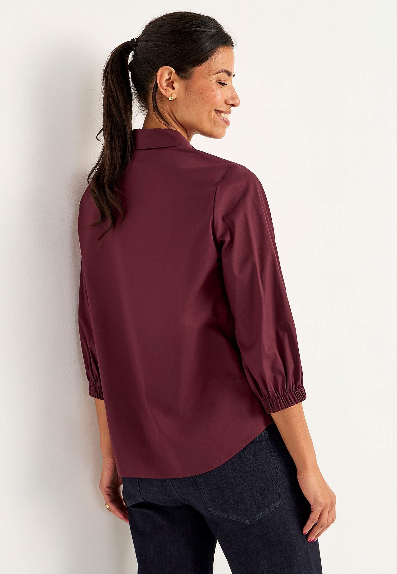 Woven shirt in stretchy poplin. Buttoned through model with classic collar. Regular fit. Gently rounded, slightly longer at the back hem. The length varies with size: about 64-79 cm from the shoulder.