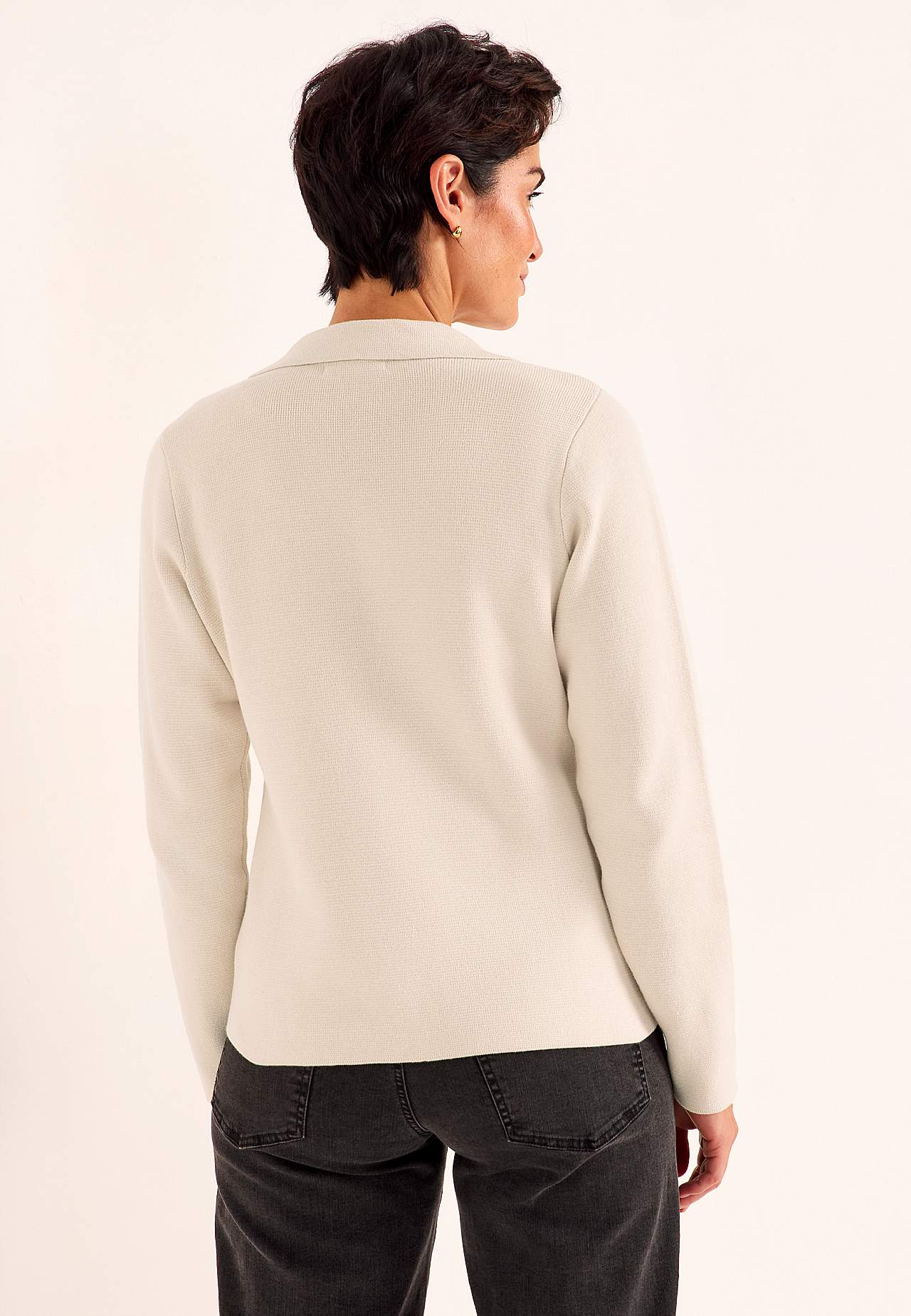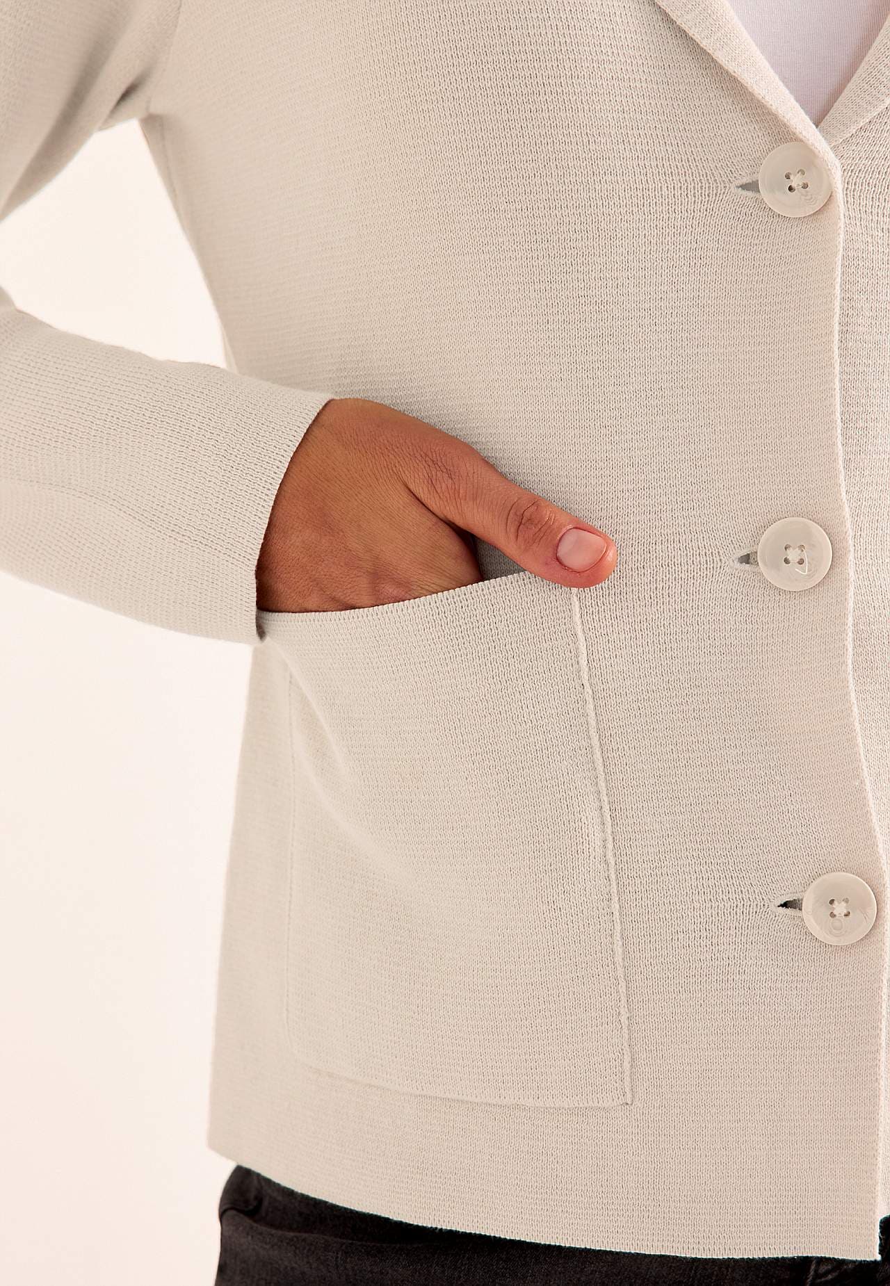Fine-knitted blazer in unyielding, soft cotton quality. Slightly figure-fitted fit. Clean, stylish design perfect for all year round. Three big buttons. Pockets at the front. Long sleeves. The length varies with size: about 61-70 cm from the shoulder.
