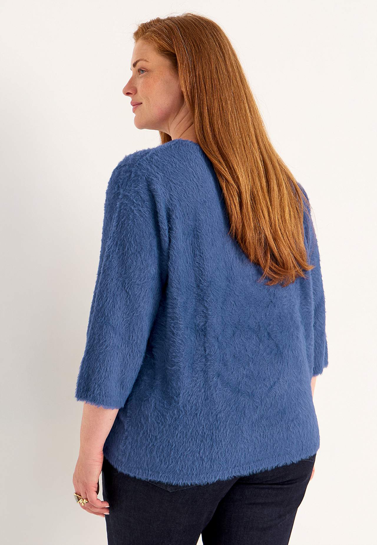 Lovely, knitted sweater. Fluffy, soft material with luster. Spacious fit. Rounded neckline. Dropped shoulder. 3/4 length, slightly flared sleeves. Straight hem. The length varies with size: about 58-73 cm from the shoulder.