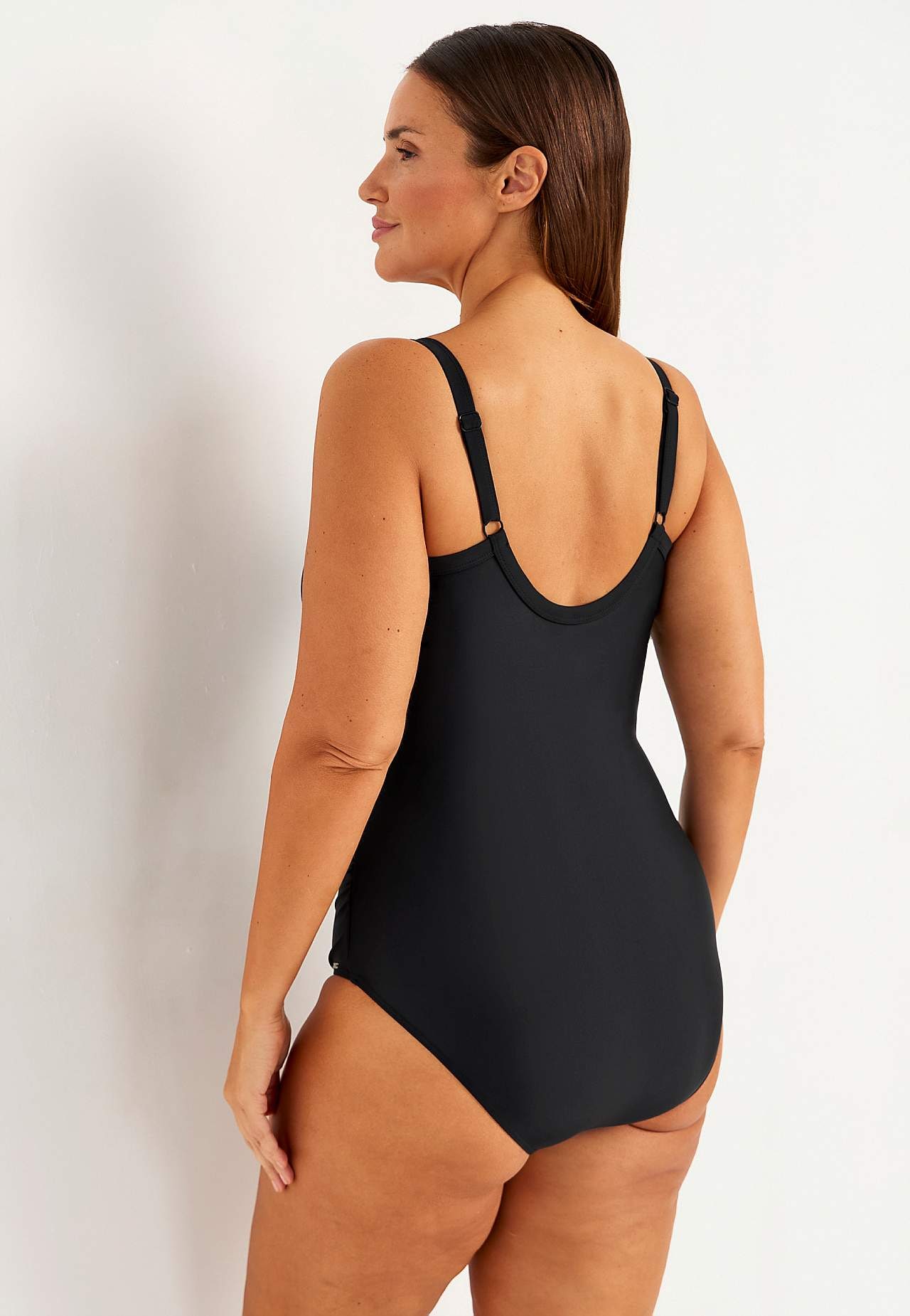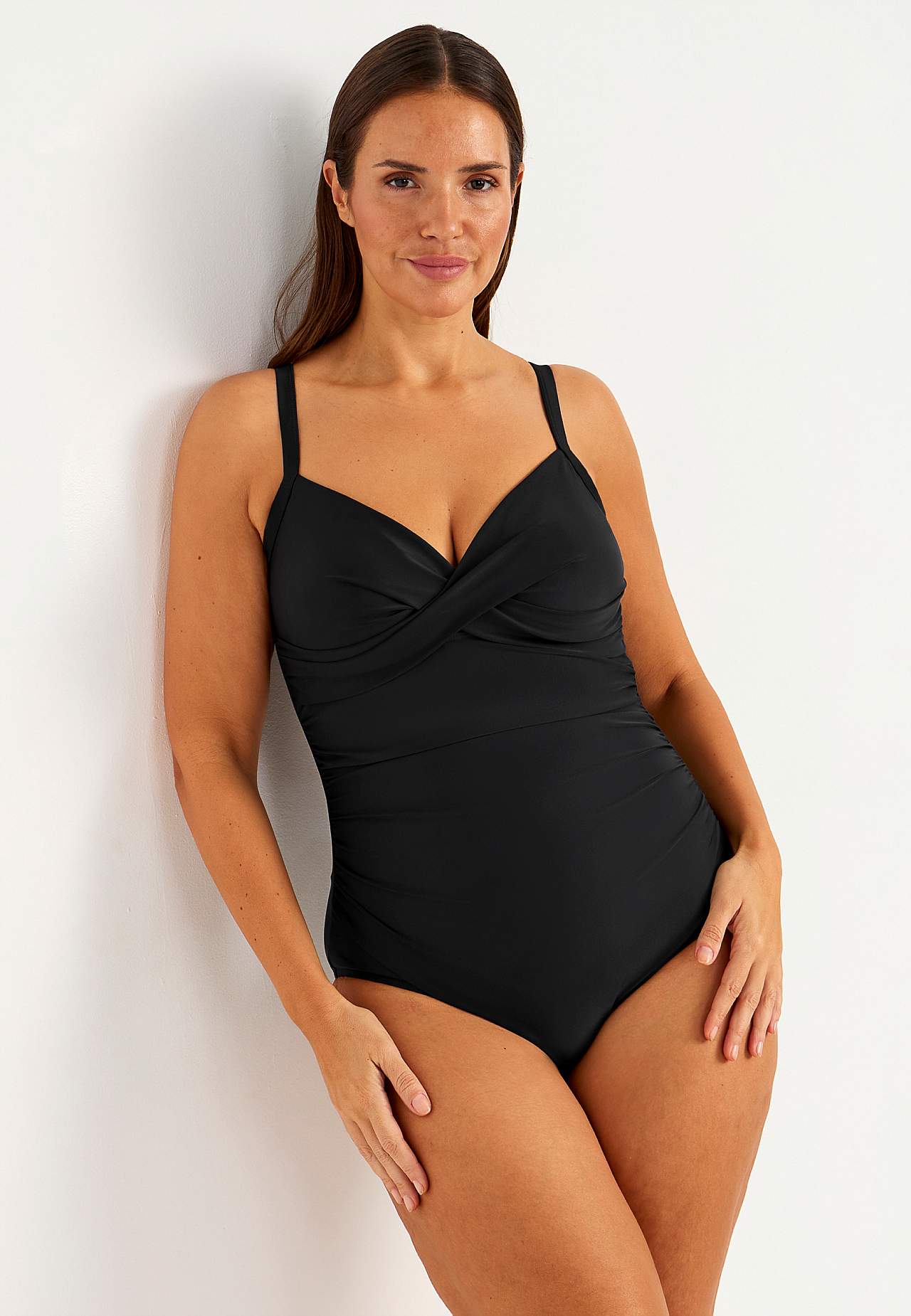 Light shaping effect. Crossed draping over the bust. Lined front. Rounded u-neck on the back. Adjustable shoulder straps.