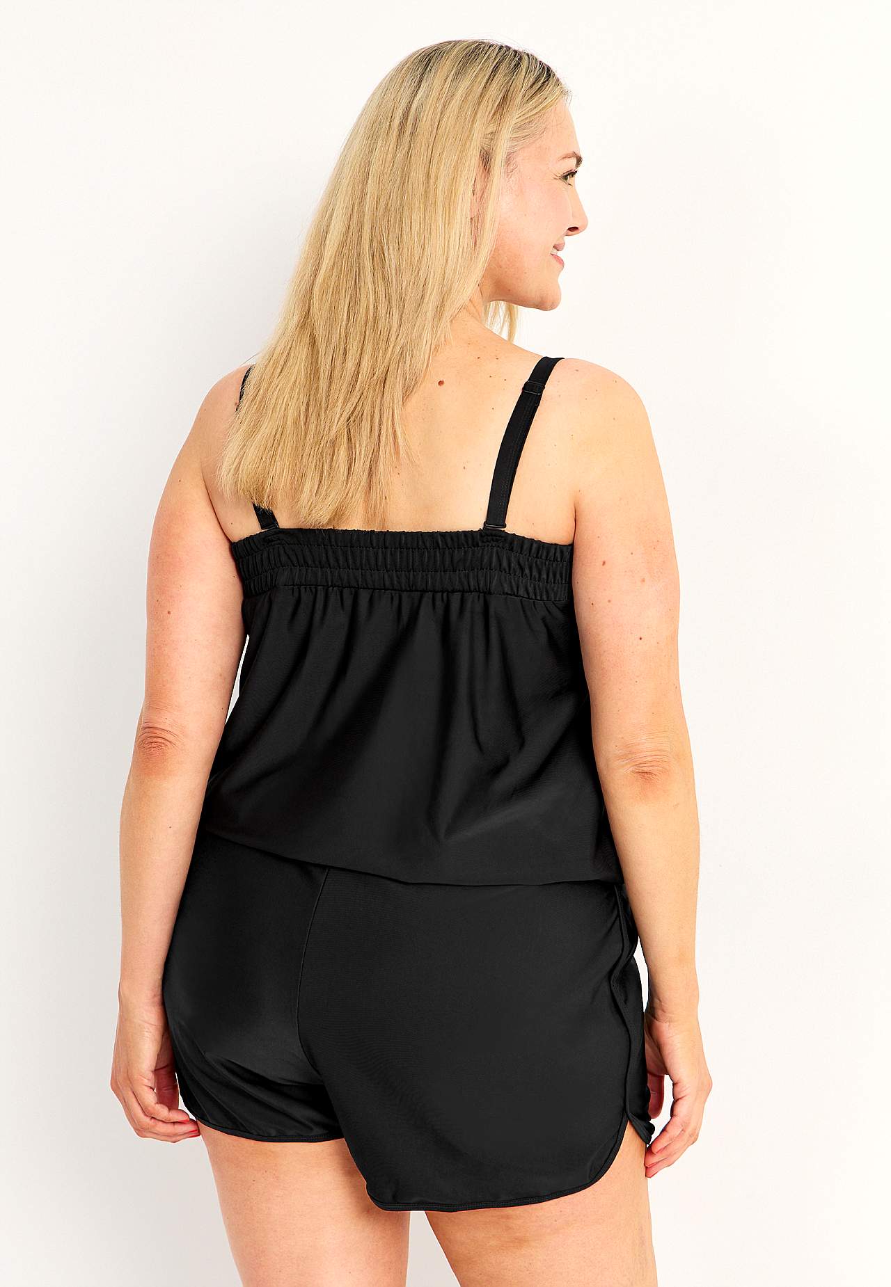 This swim playsuit is a stylish and practical alternative to a tankini set where the top and bottom are attached. In this stylish and slightly sporty playsuit, you feel both stylish and comfortable on the beach. The removable shoulder straps can also be worn straight, crossed at the back or as a halter neck. Playsuit fit wi... Read more