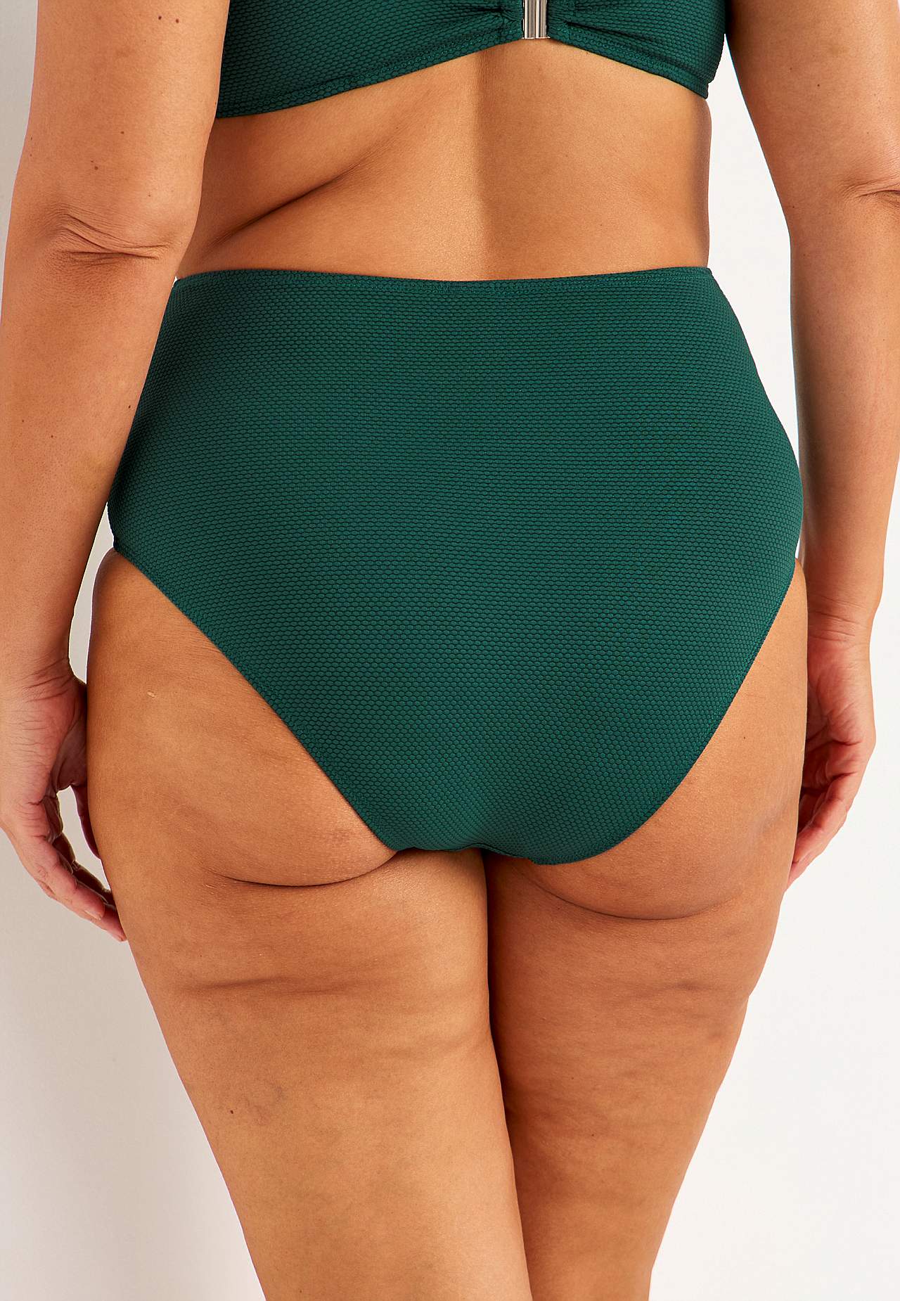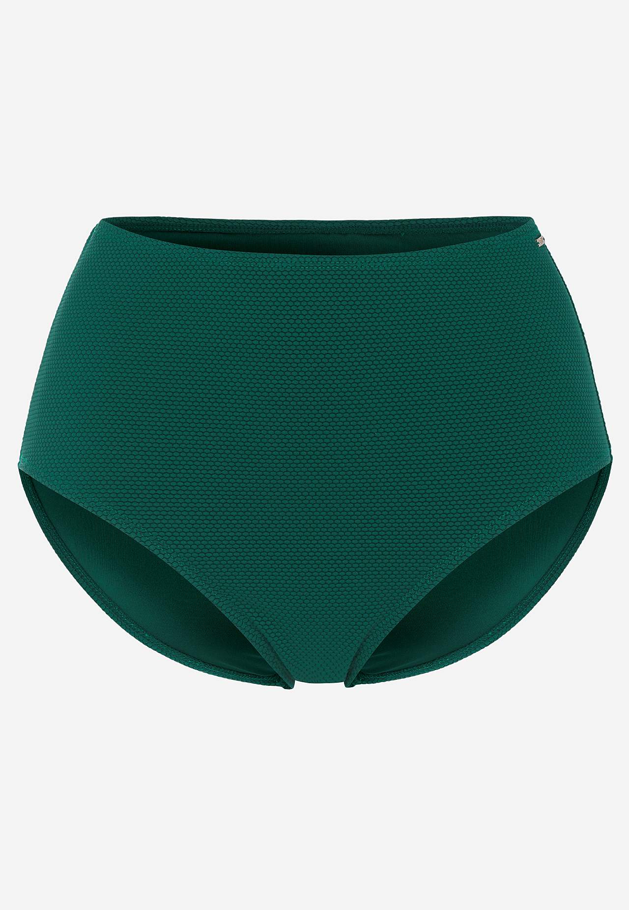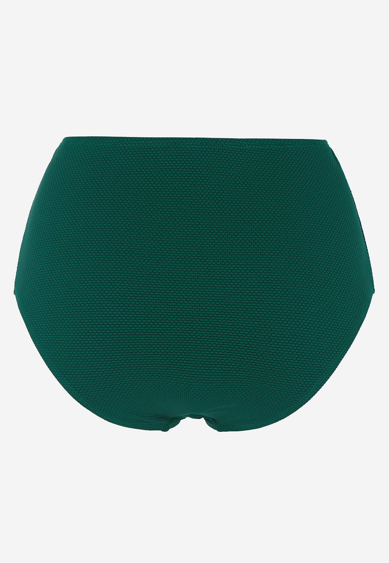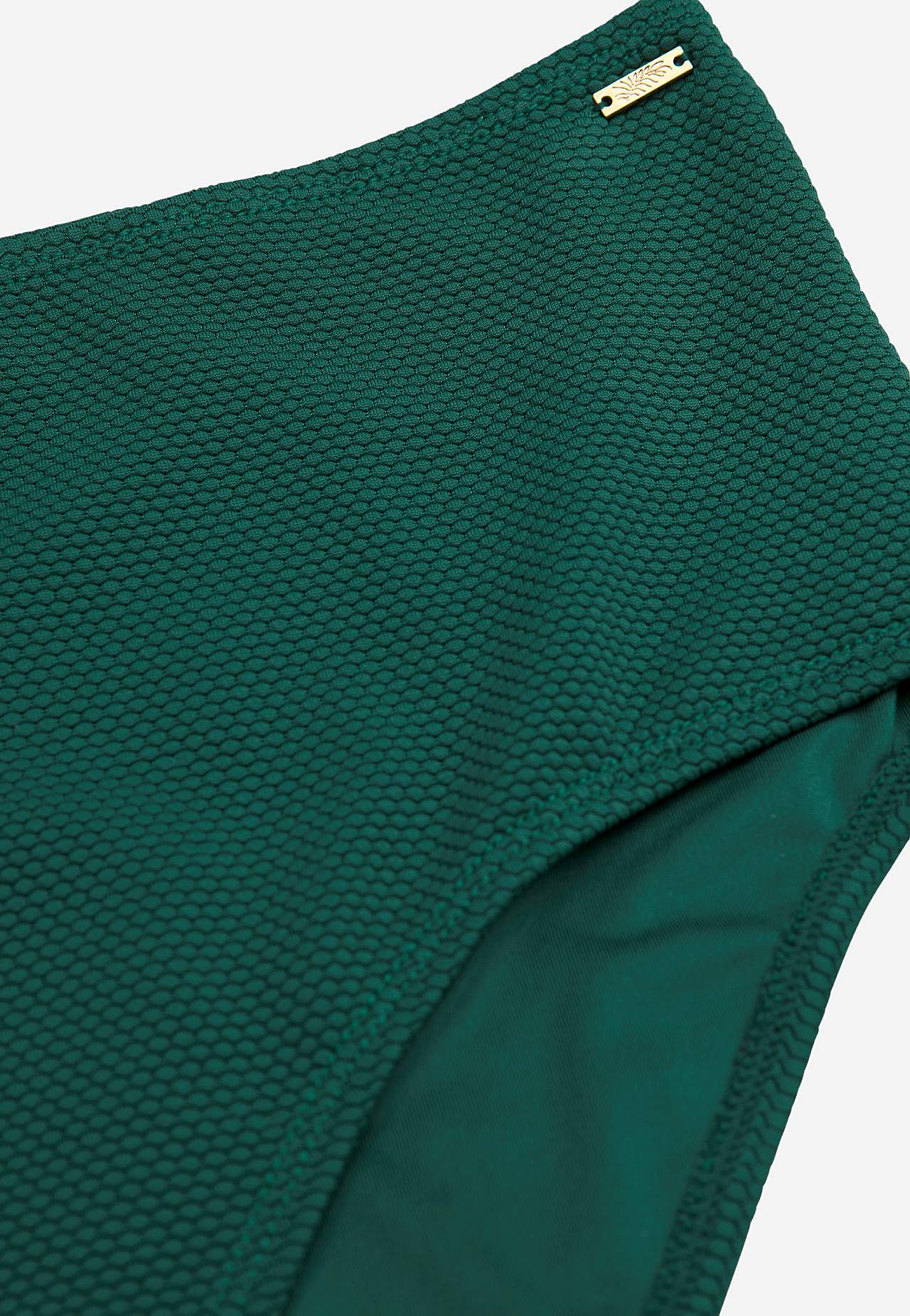 Structure patterned bikini bottom in recycled polyester. High waist with soft elastic. Fully lined inside.