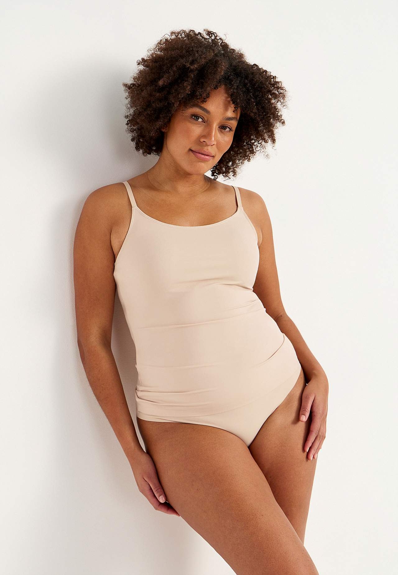 Figure-hugging fit with light shaping effect. Soft, stretchy microfibre. Quick dry material perfect for warm days. Adjustable shoulder straps. U-neck. Seamless, laser-cut hem. The back length varies with size: approx. 35-47,5 cm.