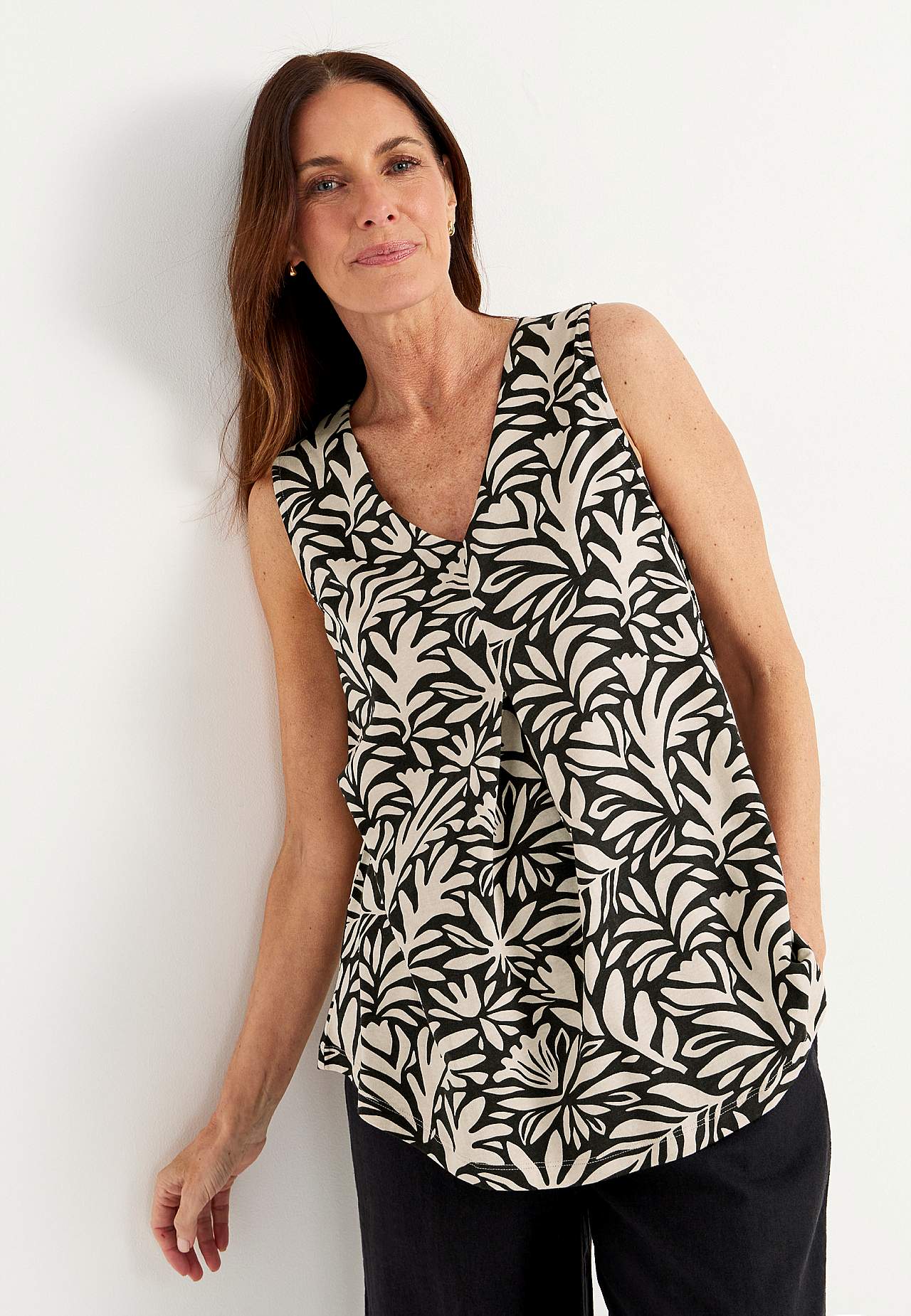 A-lined loose-fitting style. Flattering box pleat over the bust. The length varies with size: about 69-84 cm from the shoulder.