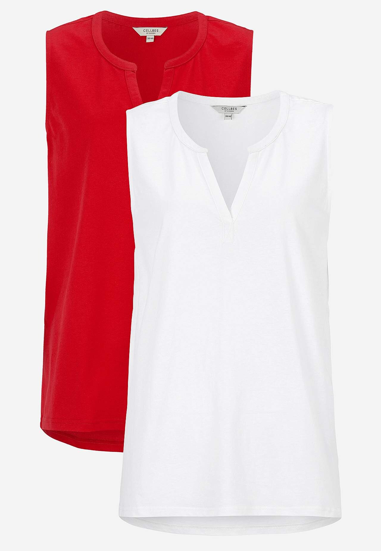 Super comfortable, airy top in soft cotton jersey. Slightly a-line-shaped fit. Round neck with v cut. Lightly rounded hem. The length varies with size: about 68-78 cm from the shoulder.