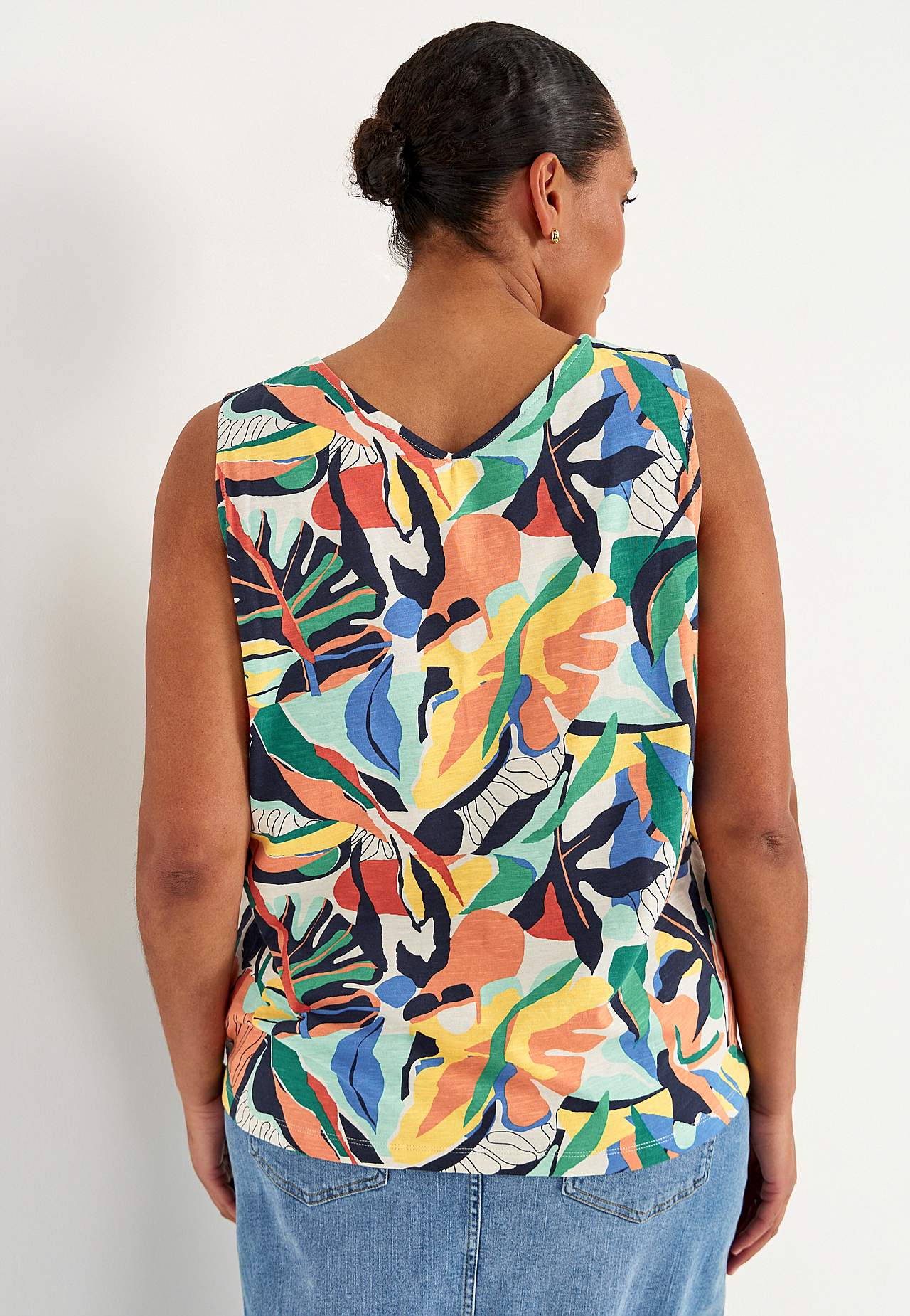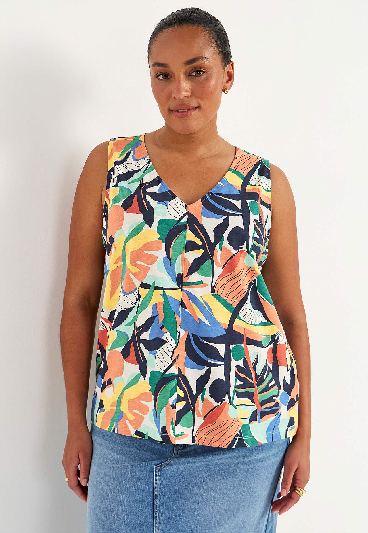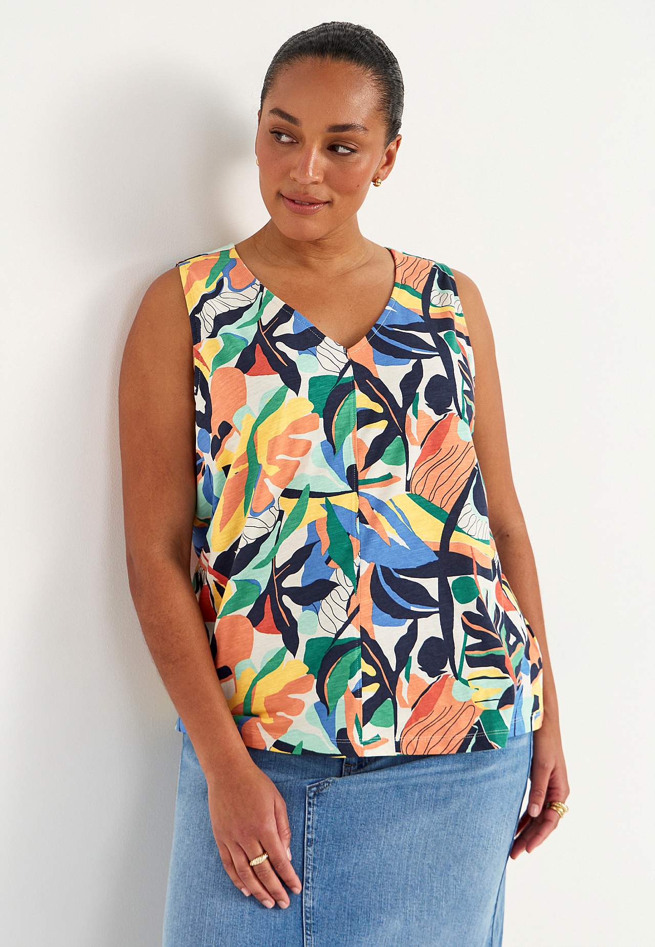 Airy slub quality with slight structure. Slightly a-line-shaped fit. V neckline at both front and back. Decorative stitch center front. The back length varies with size: approx. 60-72 cm.