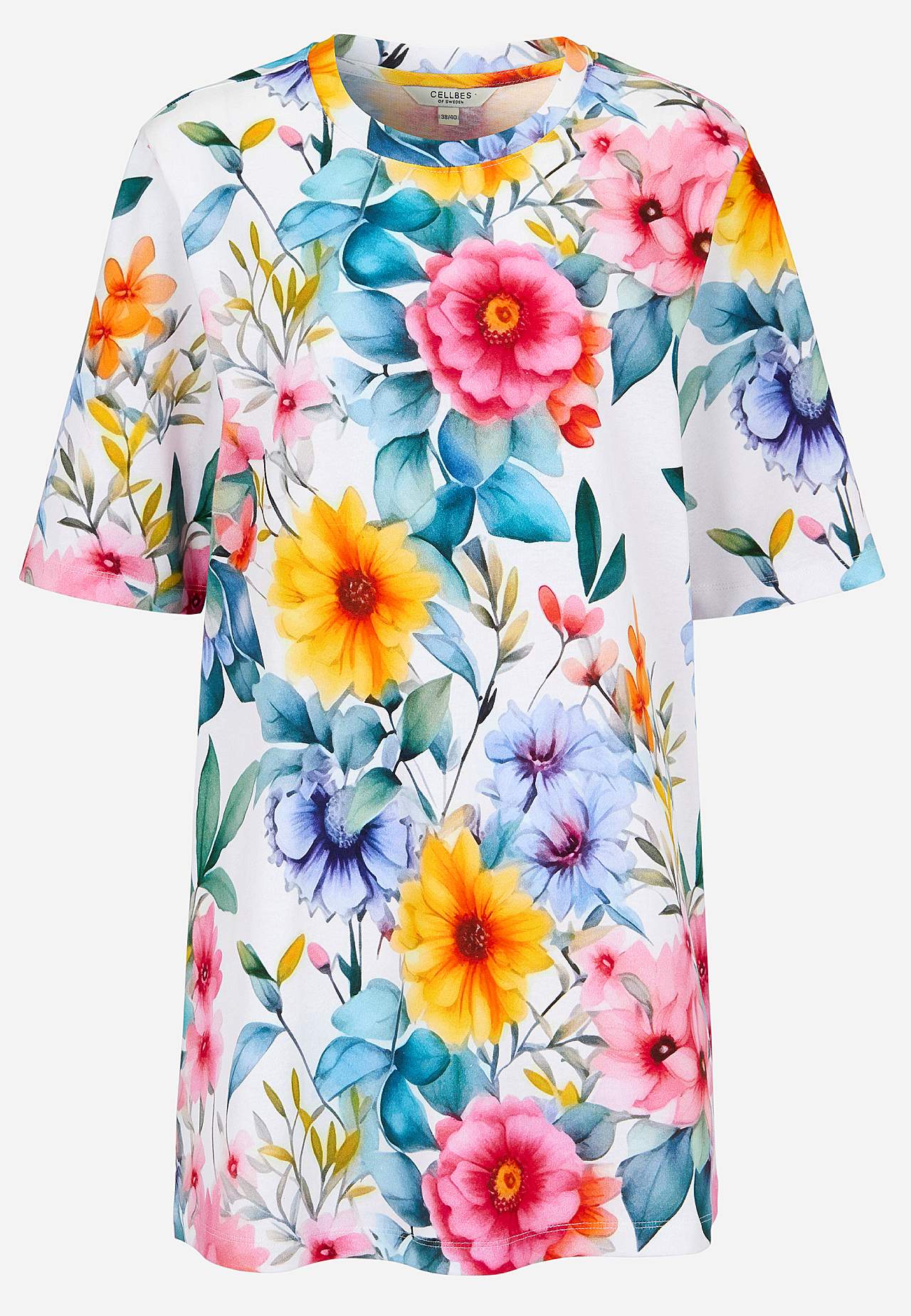 Tunic top in organic cotton. Soft, sturdy, slightly coarser quality. Oversized, straight fit. Round, ribbed neckline. Dropped shoulder. Short sleeves. Straight hem. Combine with 700011. The length varies with size: about 79-86 cm from the back shoulder.
