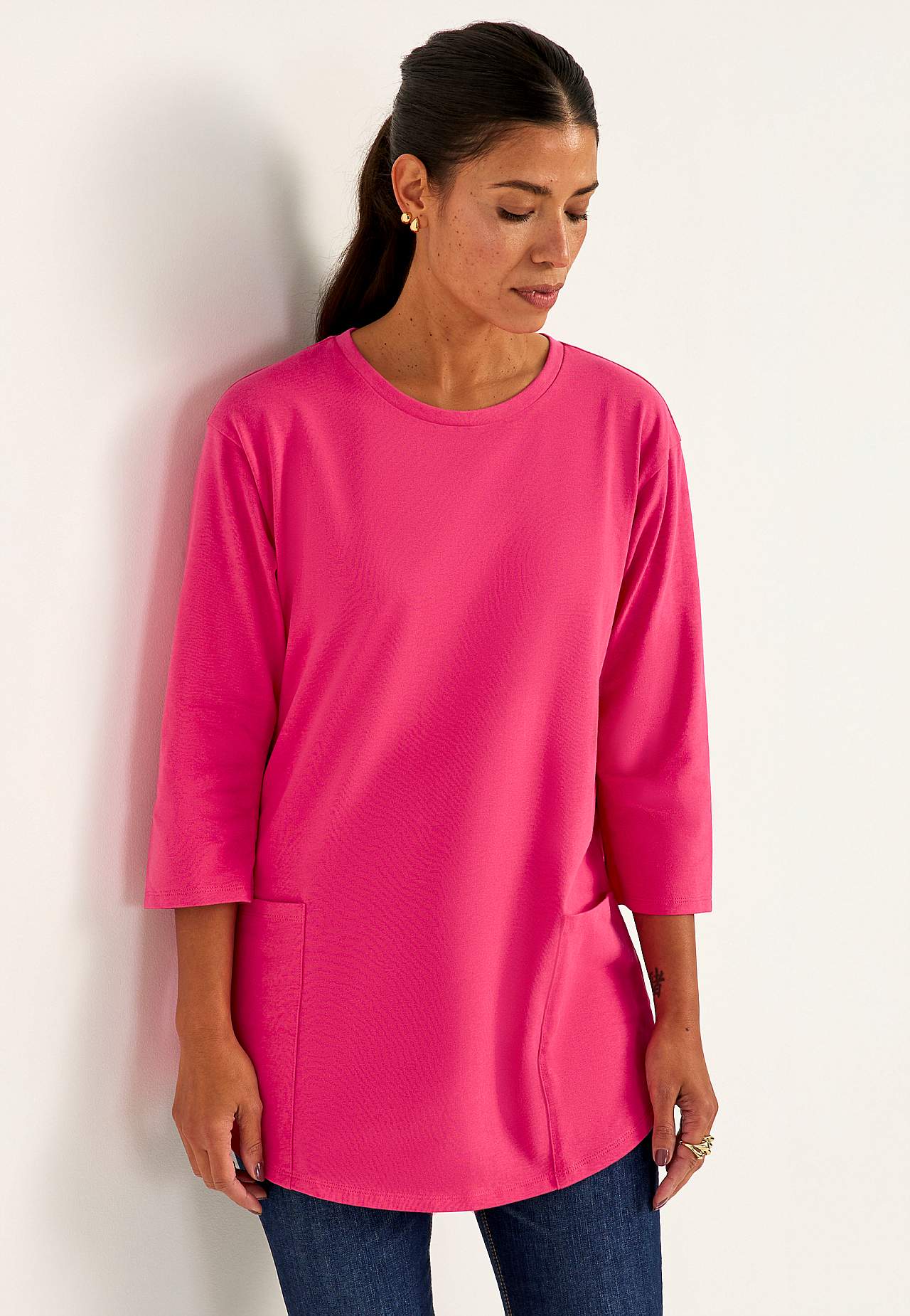Tunic top with comfy, big pockets. Soft, firm, slightly heavier quality. Oversized fit. Round, ribbed neckline. Dropped shoulder. 3/4 length, slightly wider sleeves. Big patch front pockets. Rounded hem. The length varies with size: about 78-92 cm from the shoulder.