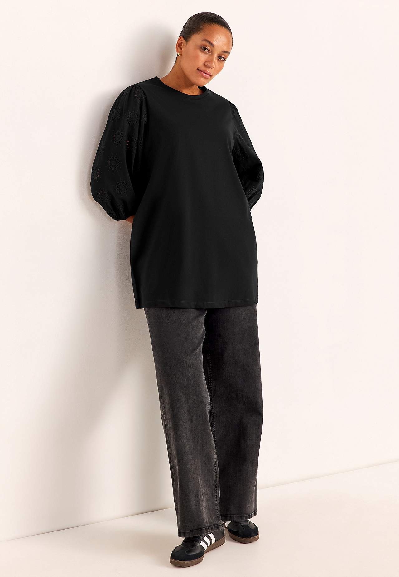 Jersey tuniq with embroidered sleeves