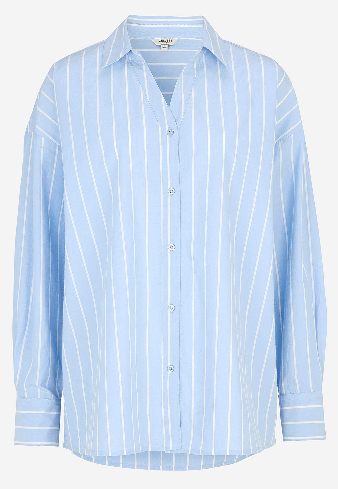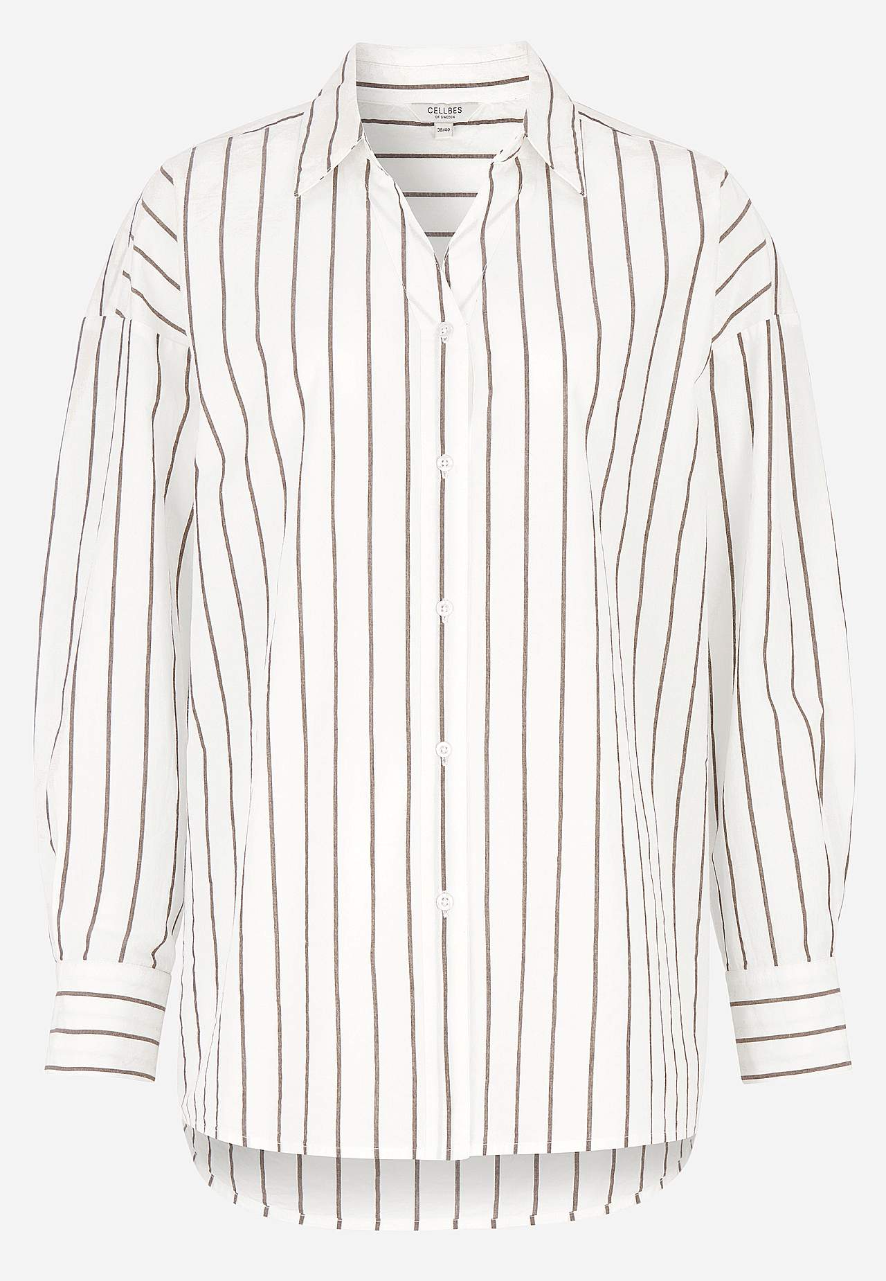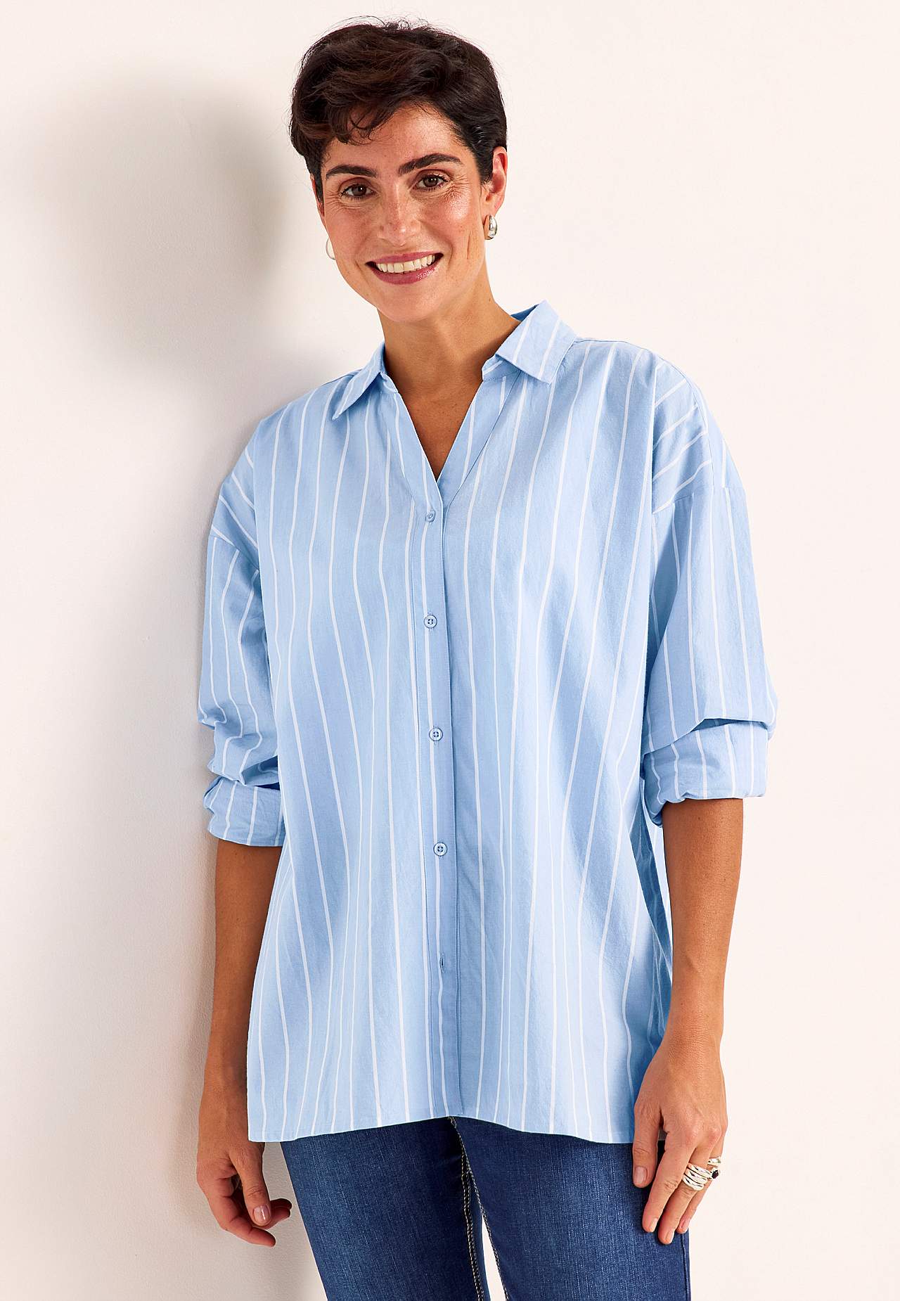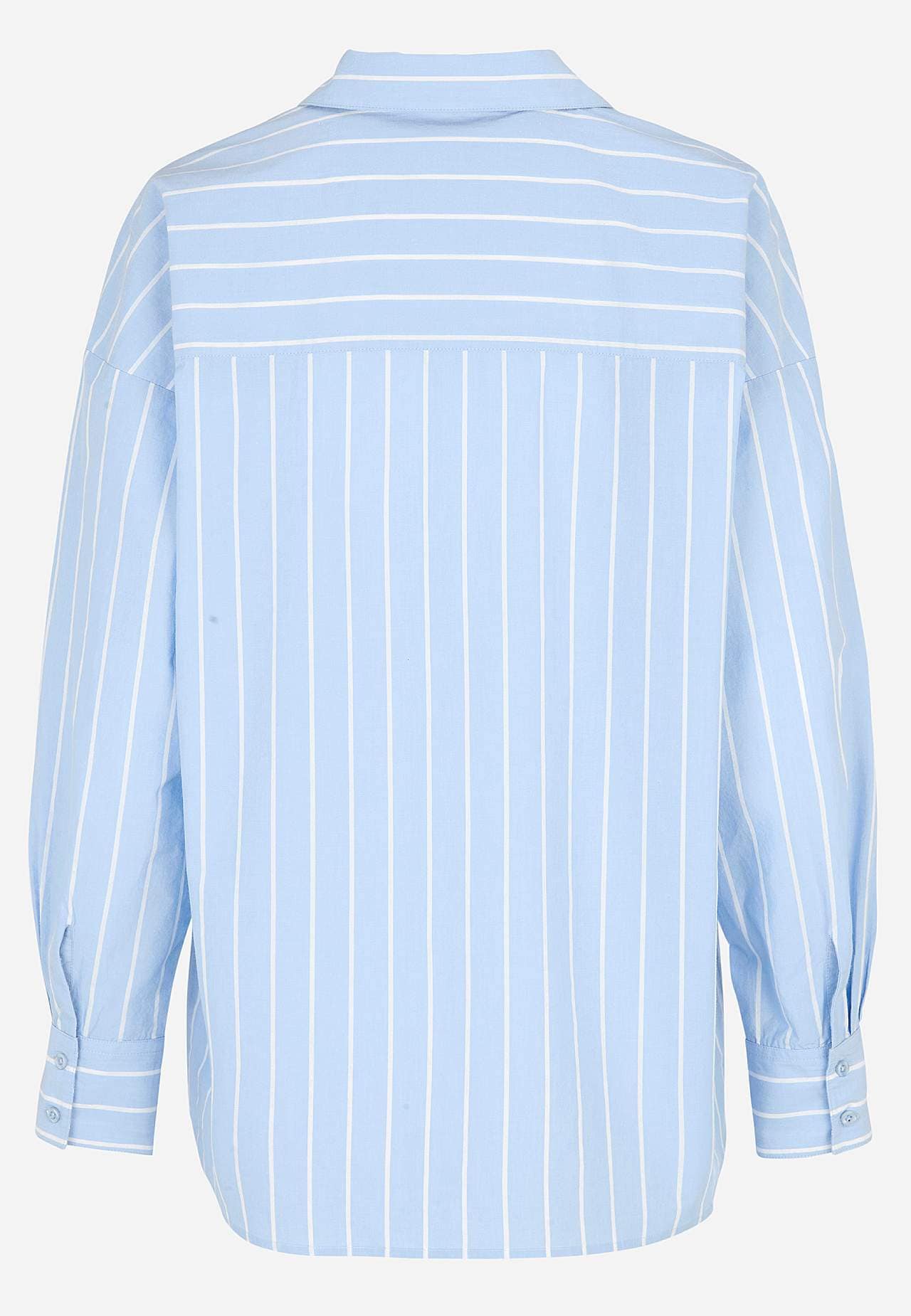 Longer shirt with classic collar and yarn-dyed, elegant stripe. Woven, soft material with crisp feel. Loose and casual fit. Classic collar and becoming v neckline. Dropped shoulder. Buttoned through model. Yoke on the back. Long sleeves with cuff and buttons. Rounded, slightly longer at the back hem. The length varies with... Read more