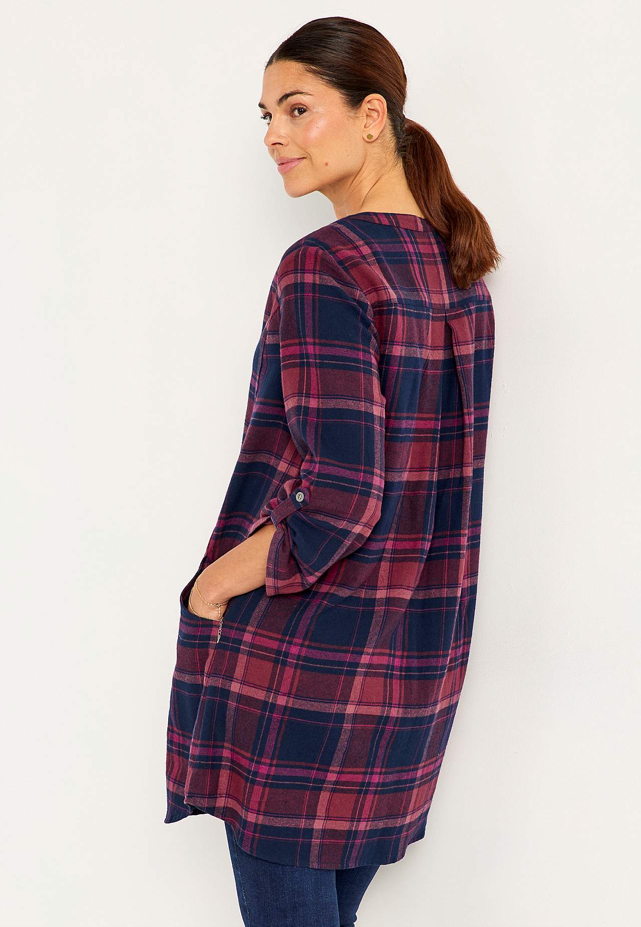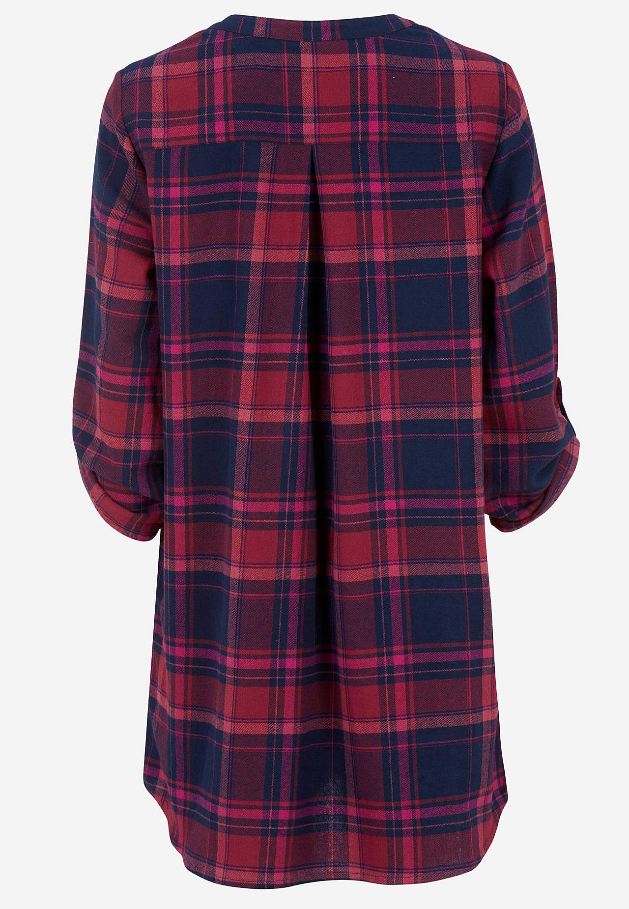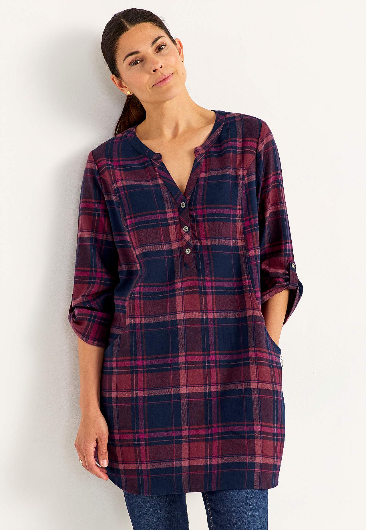 Slightly a-line-shaped tunic. Super soft cotton flannel. Rounded neckline with v cut and button placket. Yoke with nice pleat on the back. 3/4 length, foldable sleeves with tamp and button. Spacious pockets at the front. Rounded hem. The length varies with size: about 84-96 cm from the shoulder.